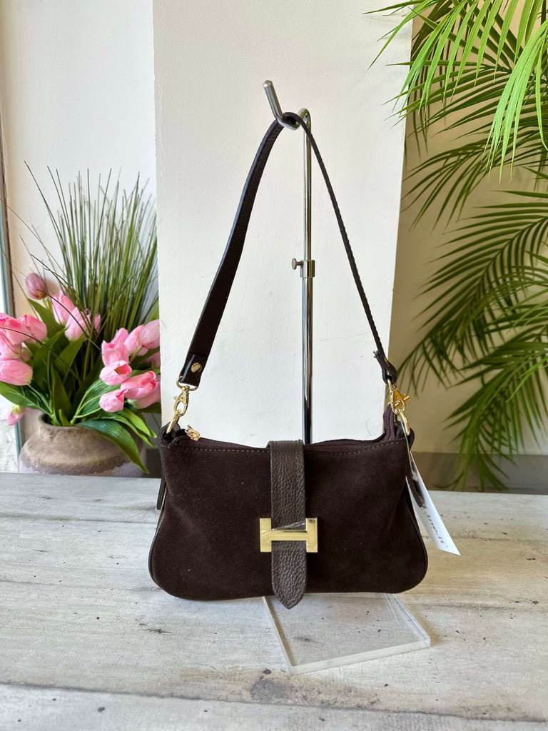 Borsetta a Spalla con Accessorio Dorato Pelle e Camoscio Marrone GIULIETTA