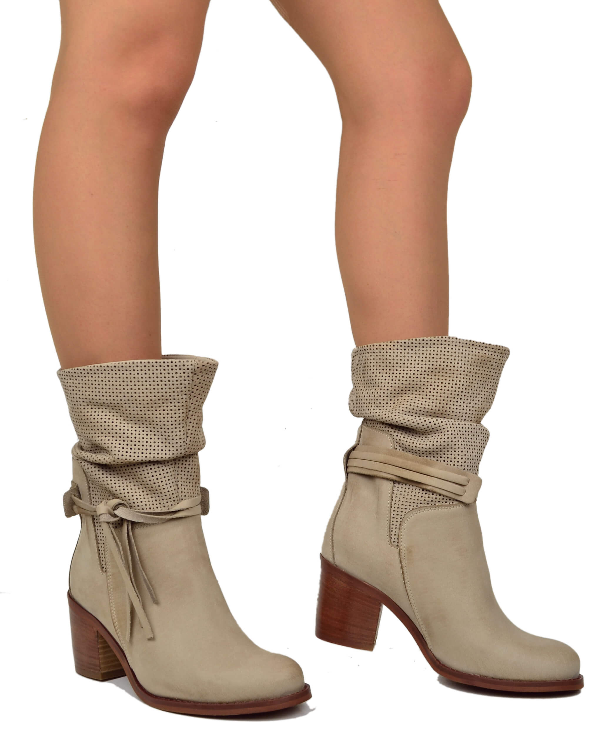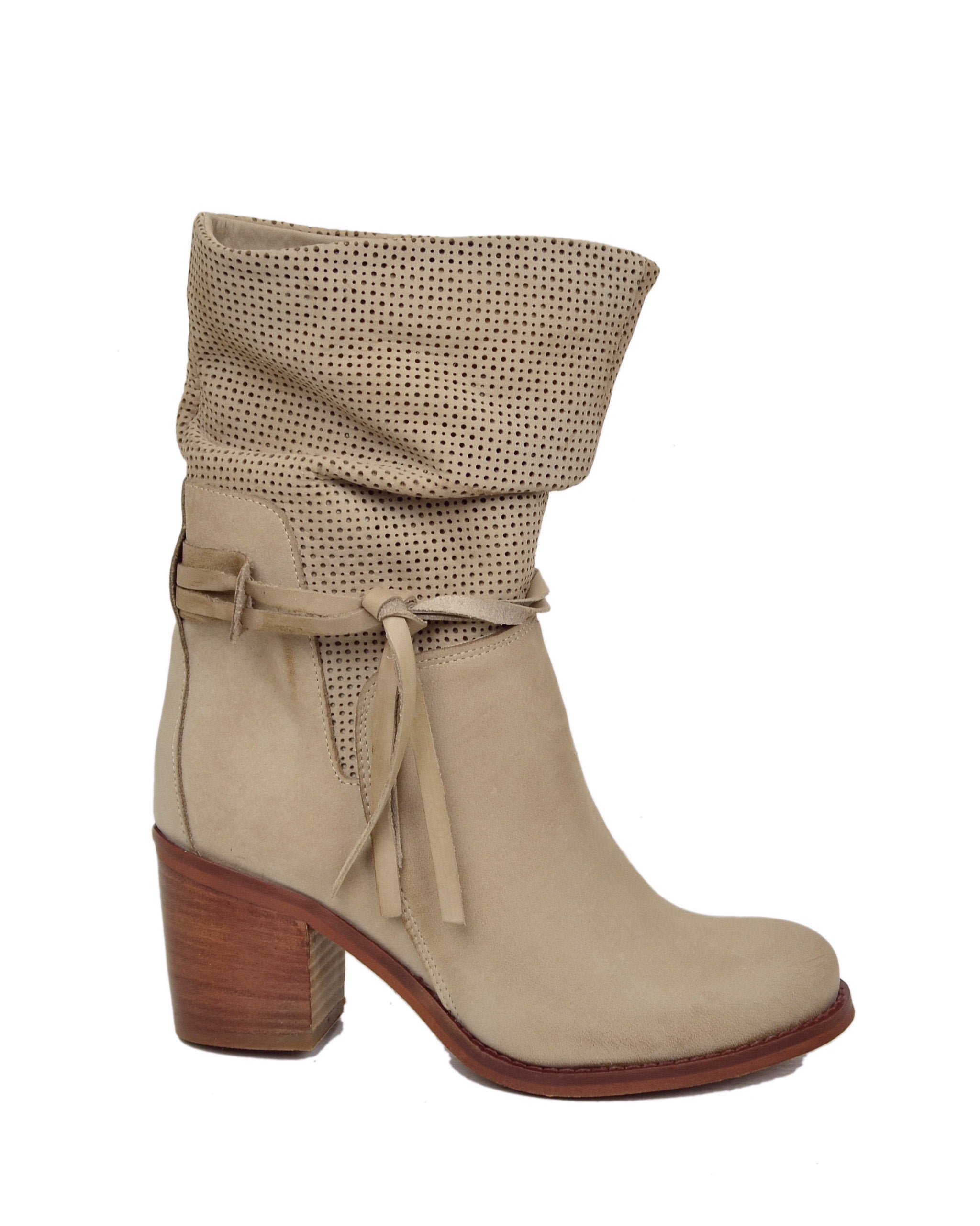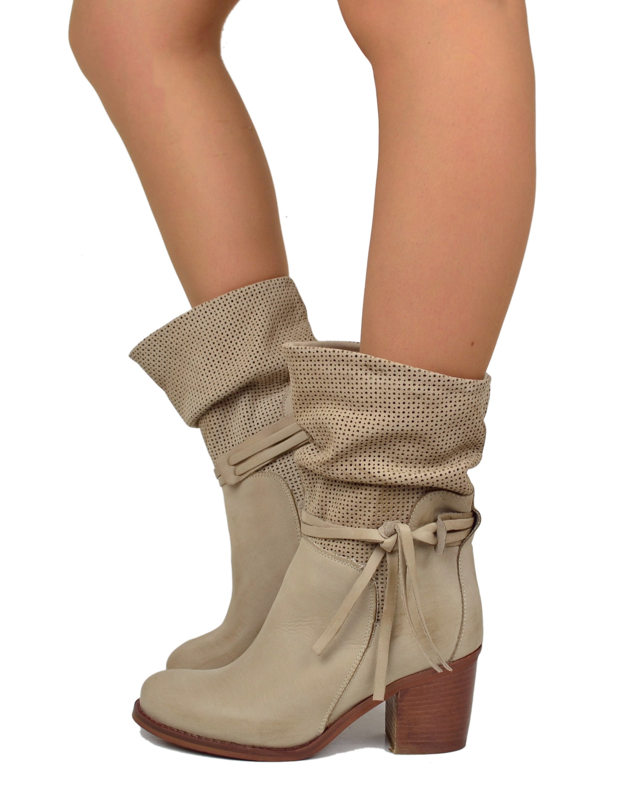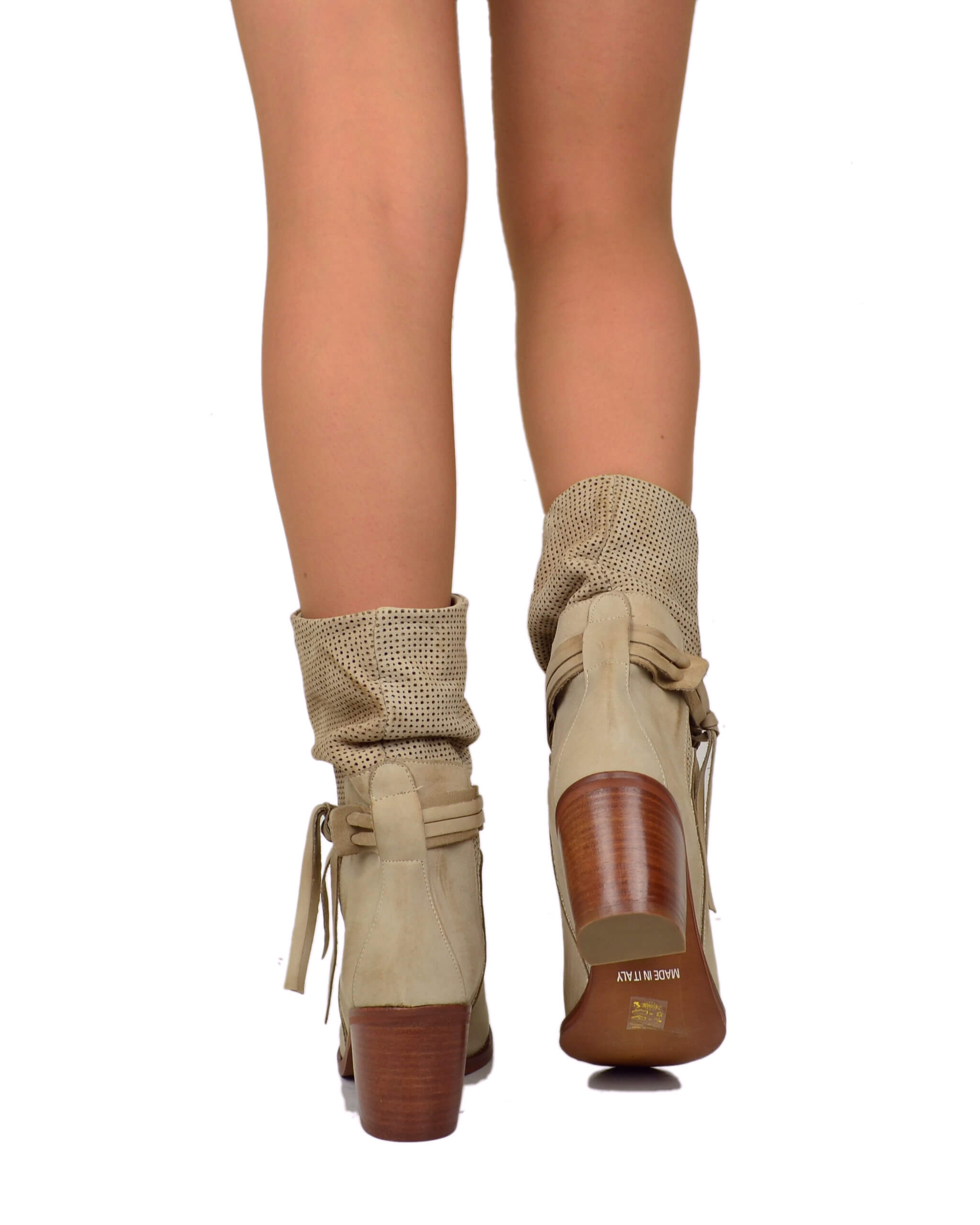 Ankle Boots aus echtem perforiertem Leder in Taupe, schattiert, Made in Italy