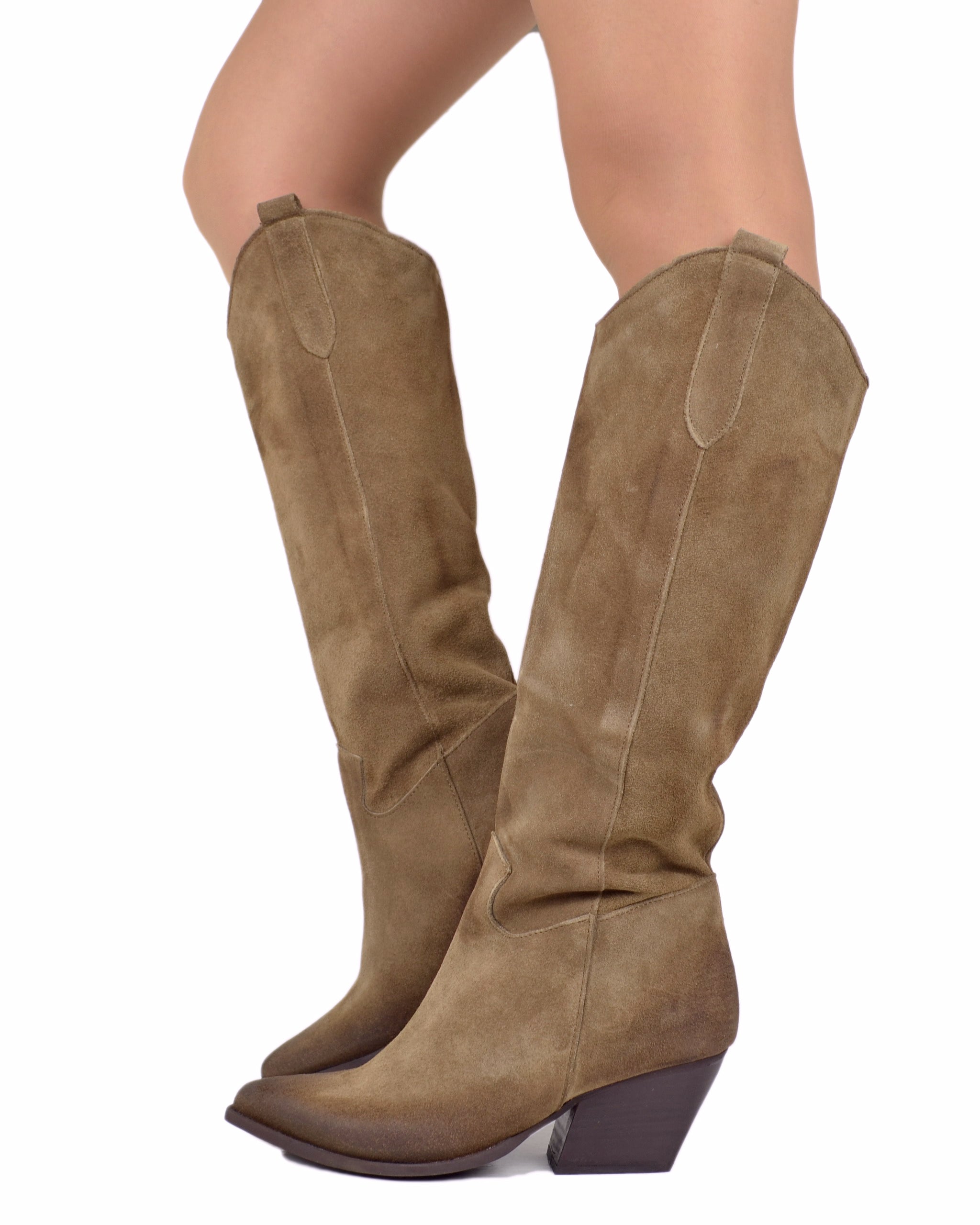 Damen Western Stiefel aus Wildleder Taupe – Made in Italy