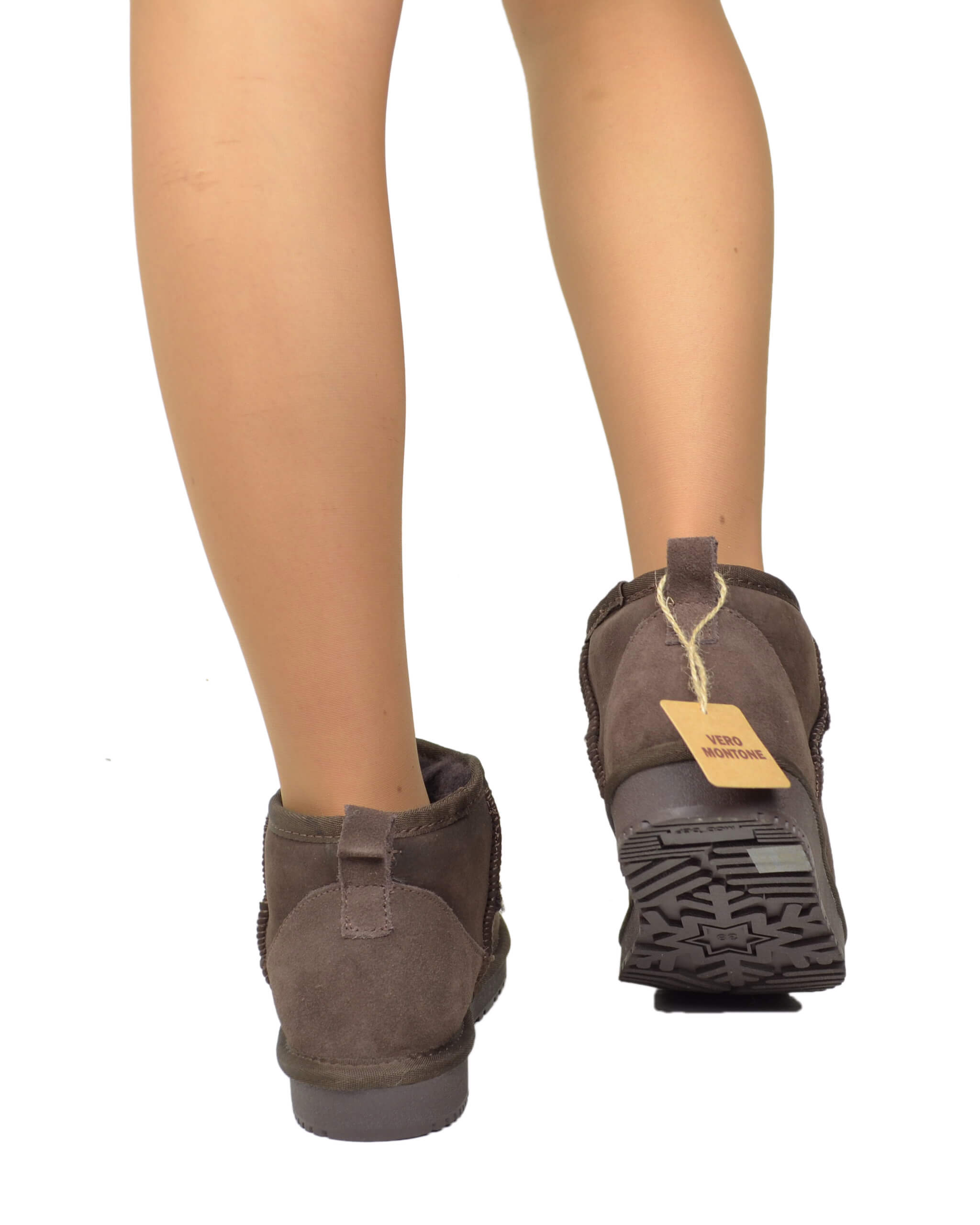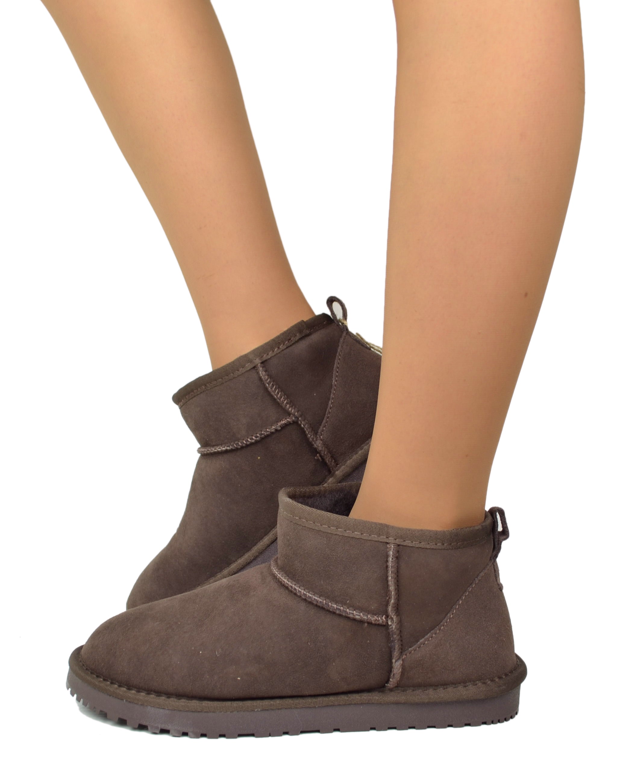 Damenstiefeletten Echt Lammfell Dunkelbraun