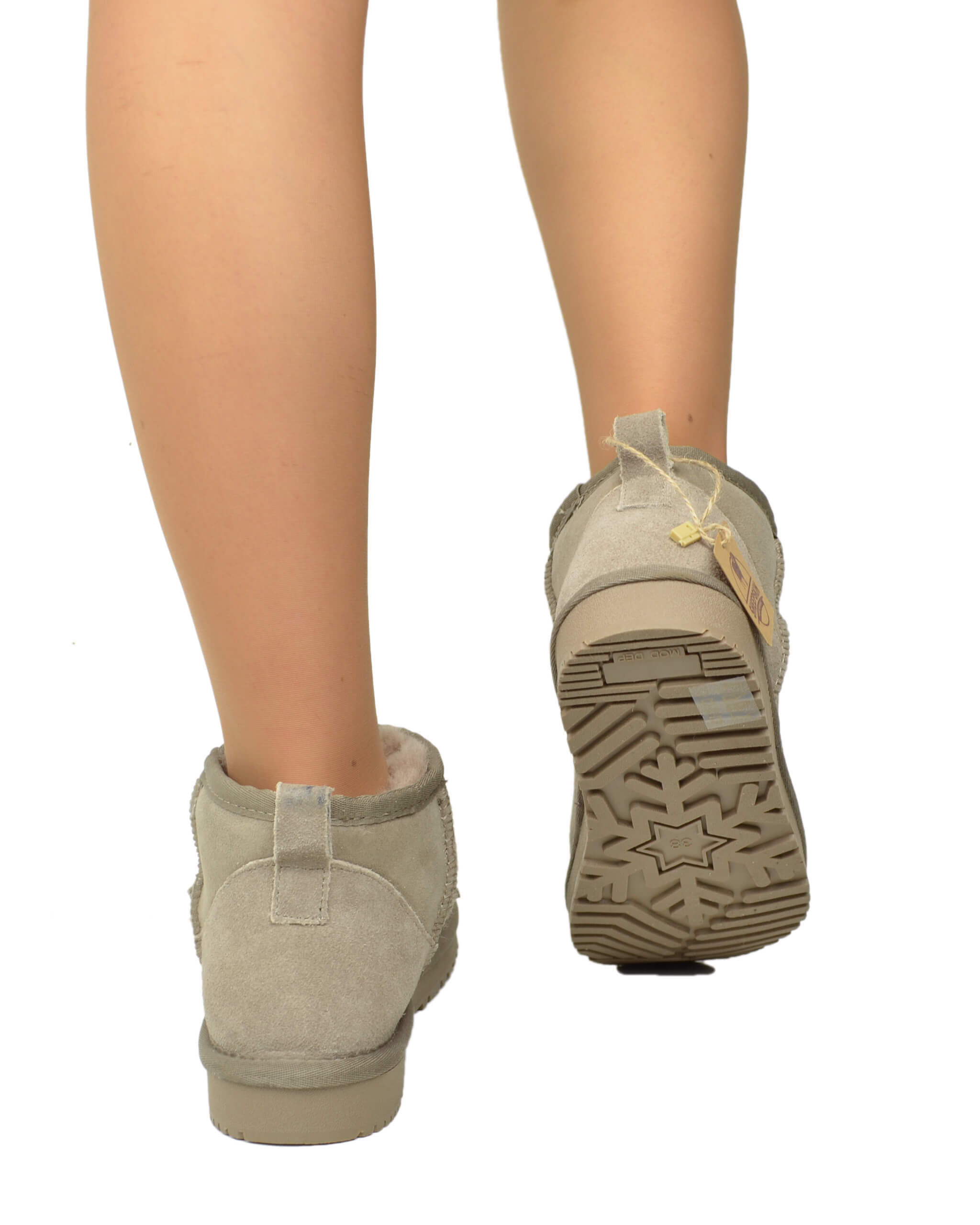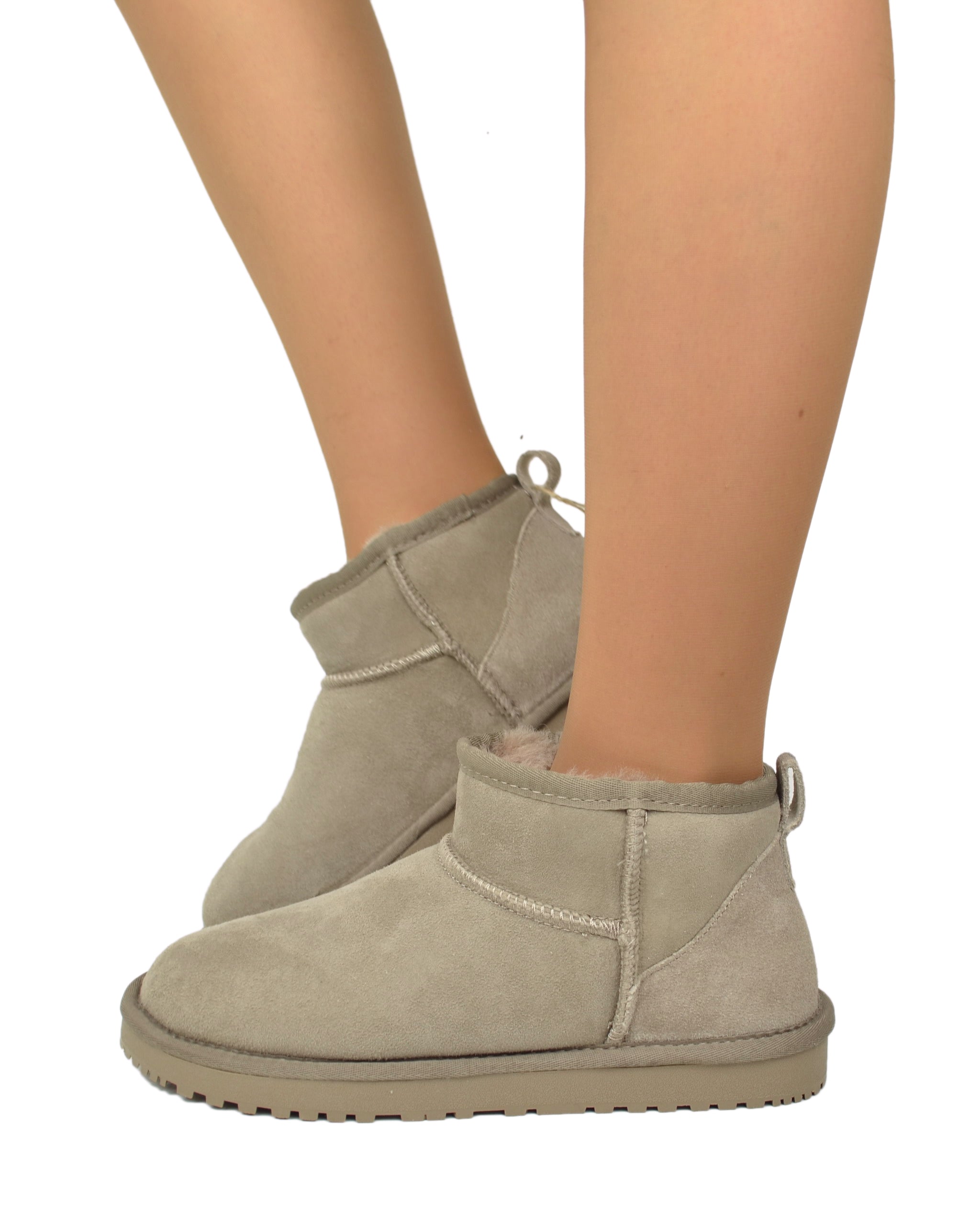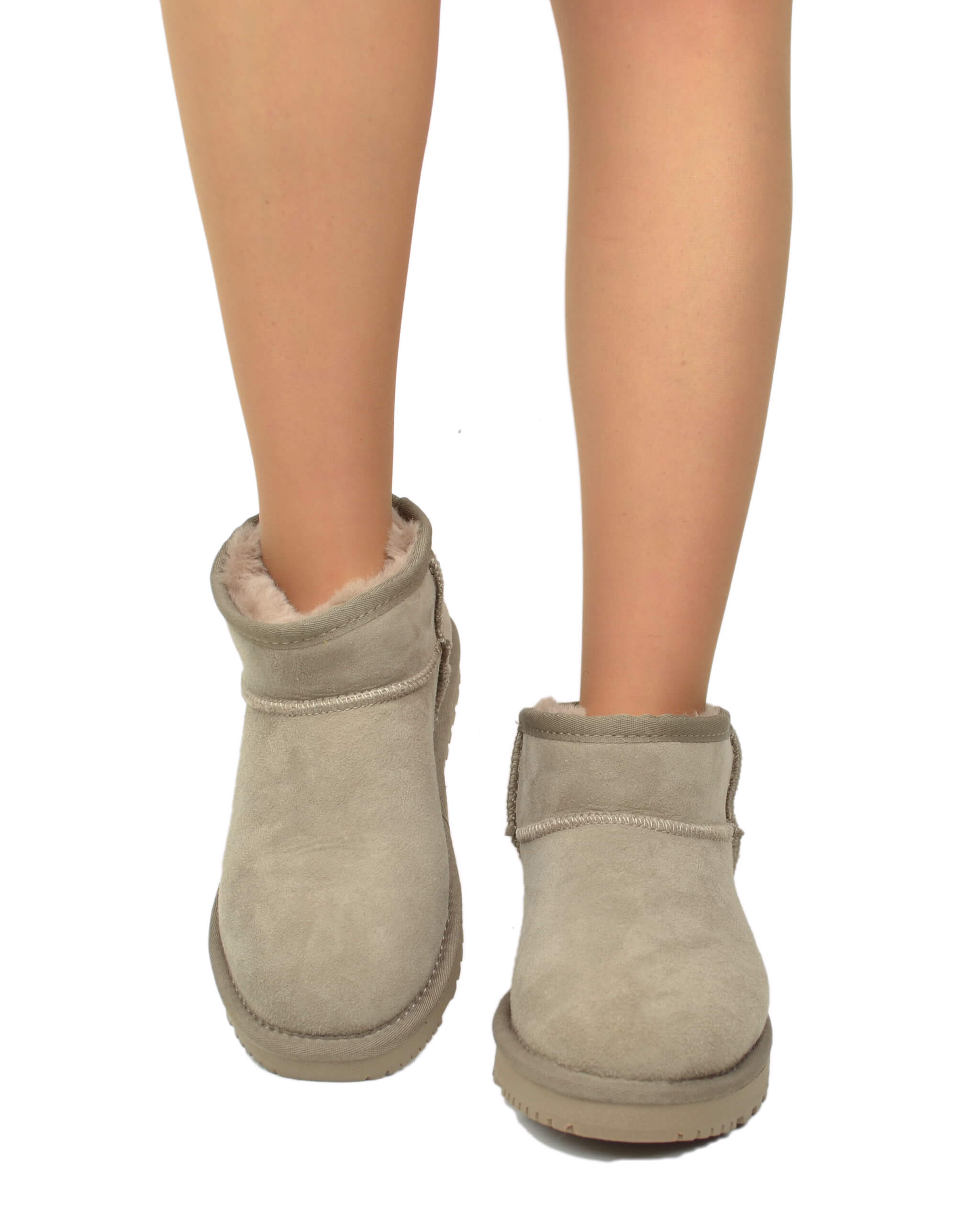 Damenstiefeletten Echt Lammfell Taupe Ultra Mini