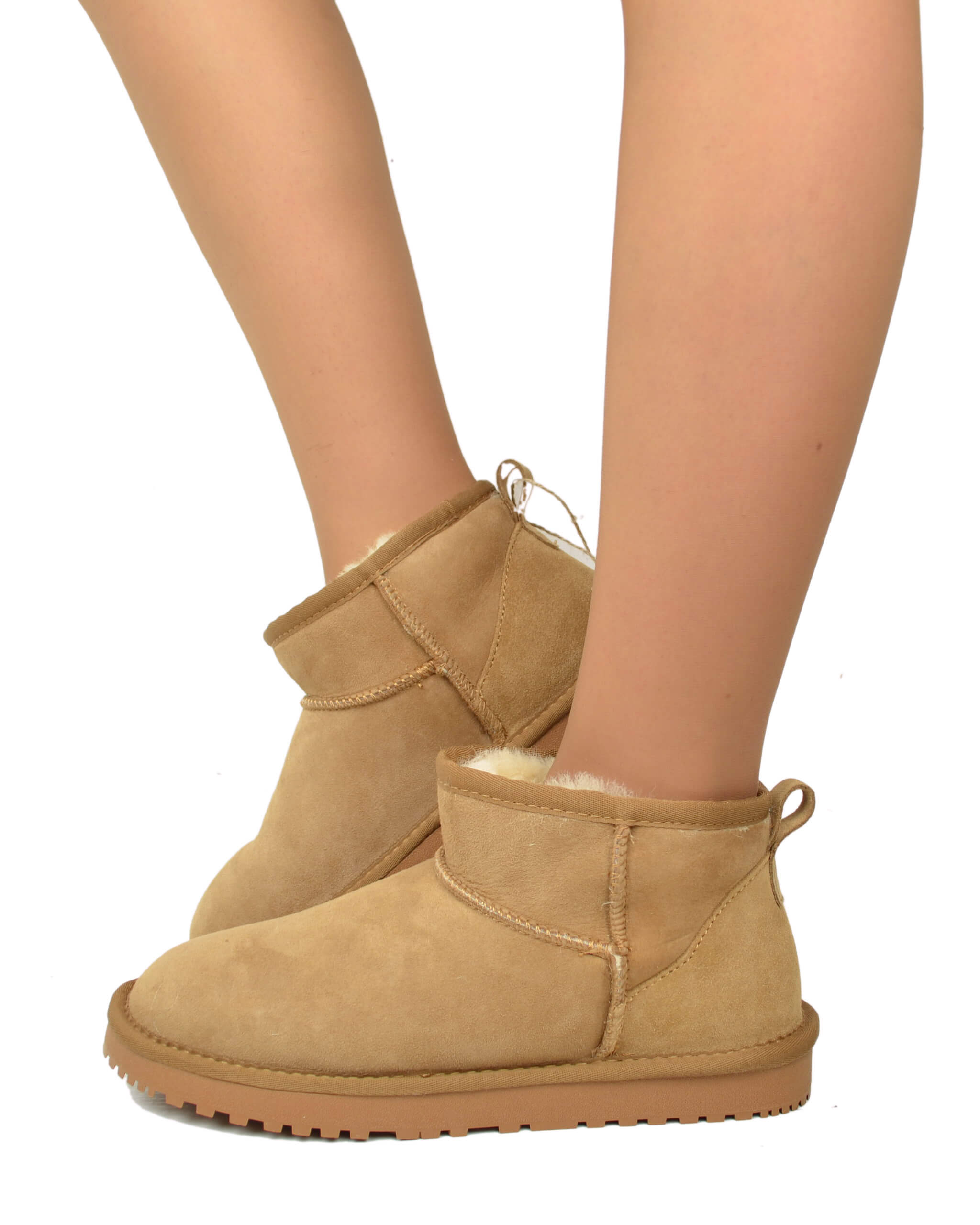 Stivaletti Donna con Pelo in Vero Montone Mini Boots Camel