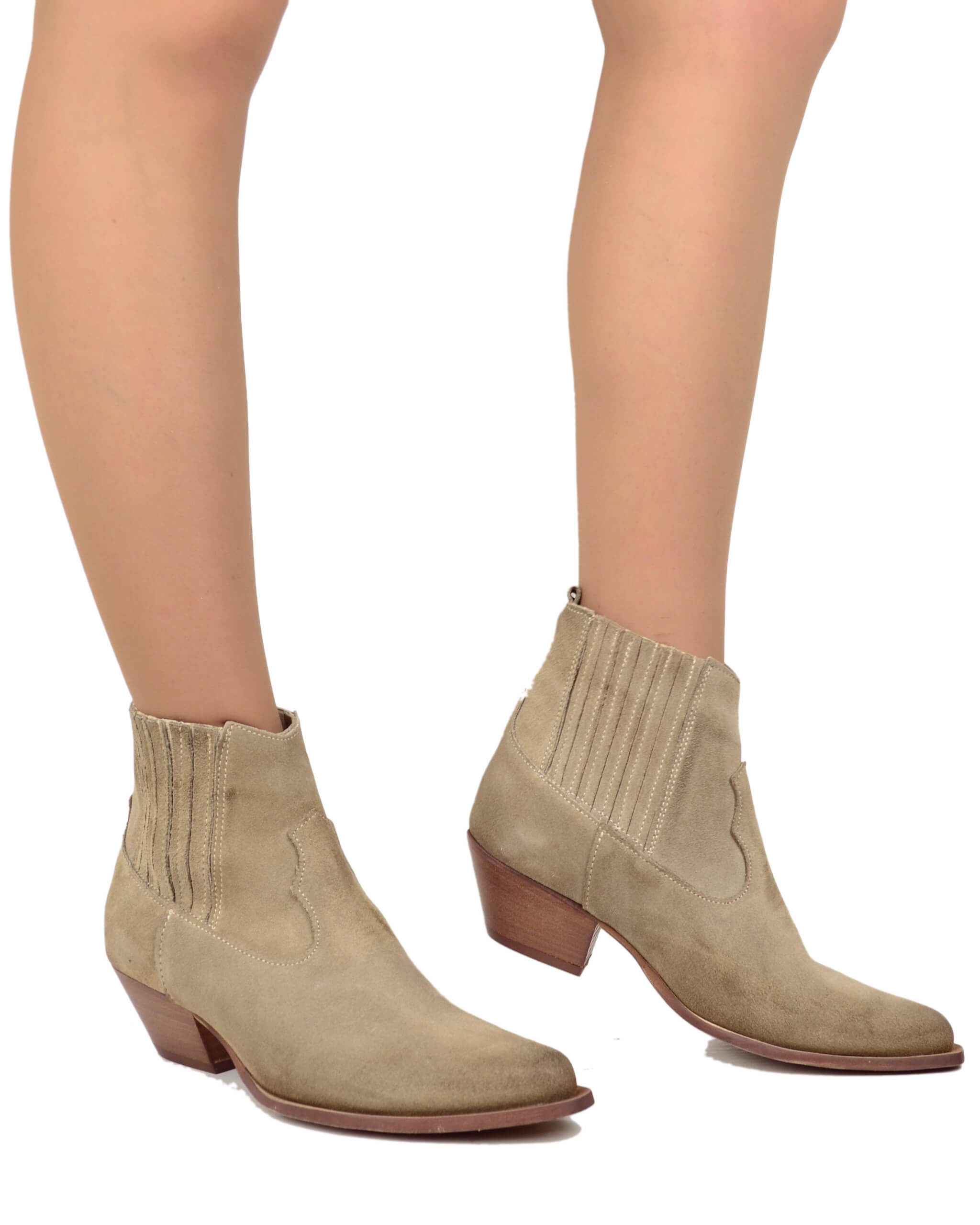 Beatles western ankle boots in Mousse suede, 5 cm heel, perfect with trousers