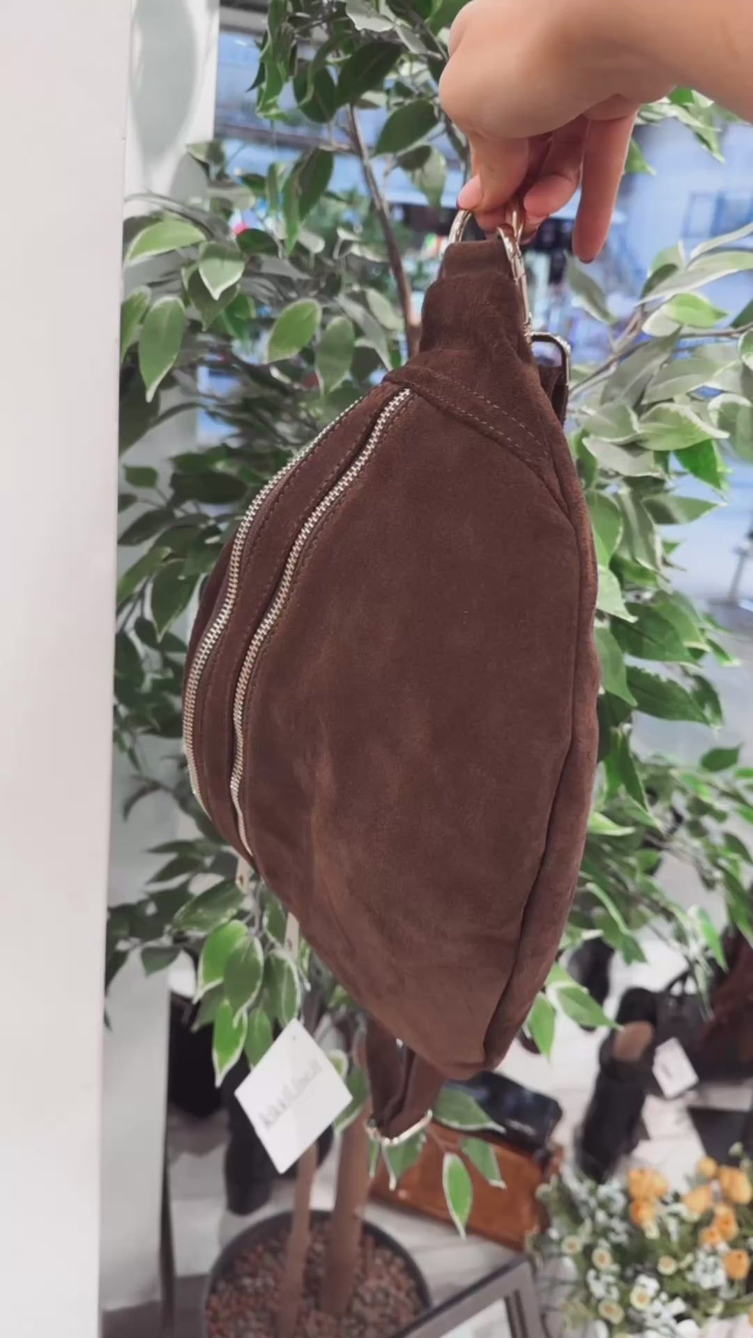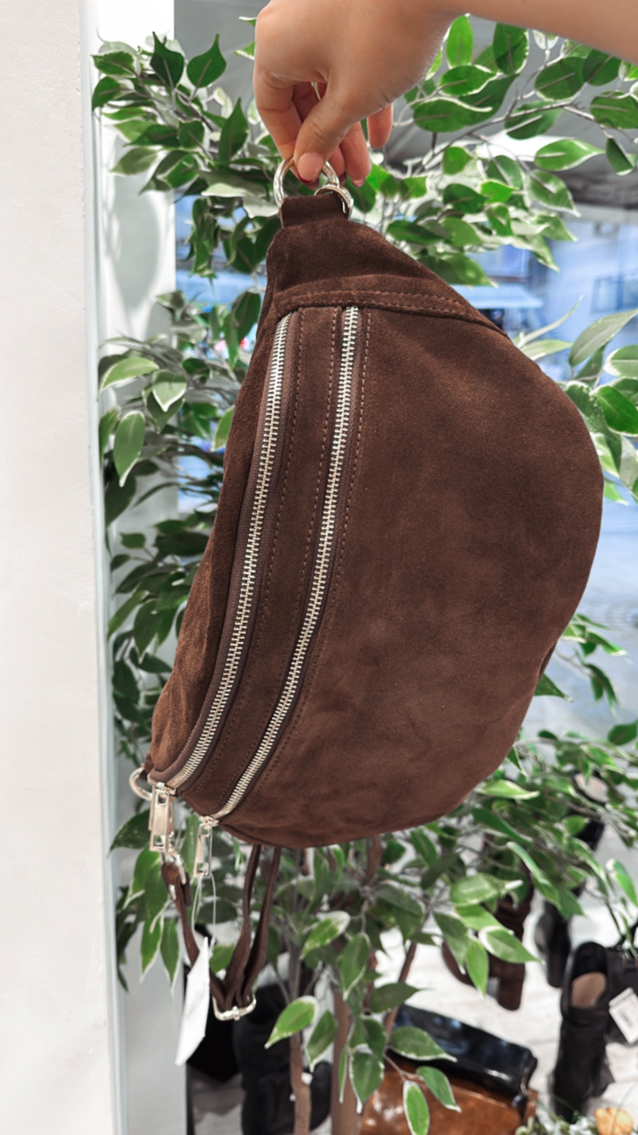 Discover the Noemi Large Belt Bag, made from genuine brown suede leather with a shiny golden zip. Lightweight, spacious, and effortlessly chic — perfect for carrying your essentials in style during your daily adventures.