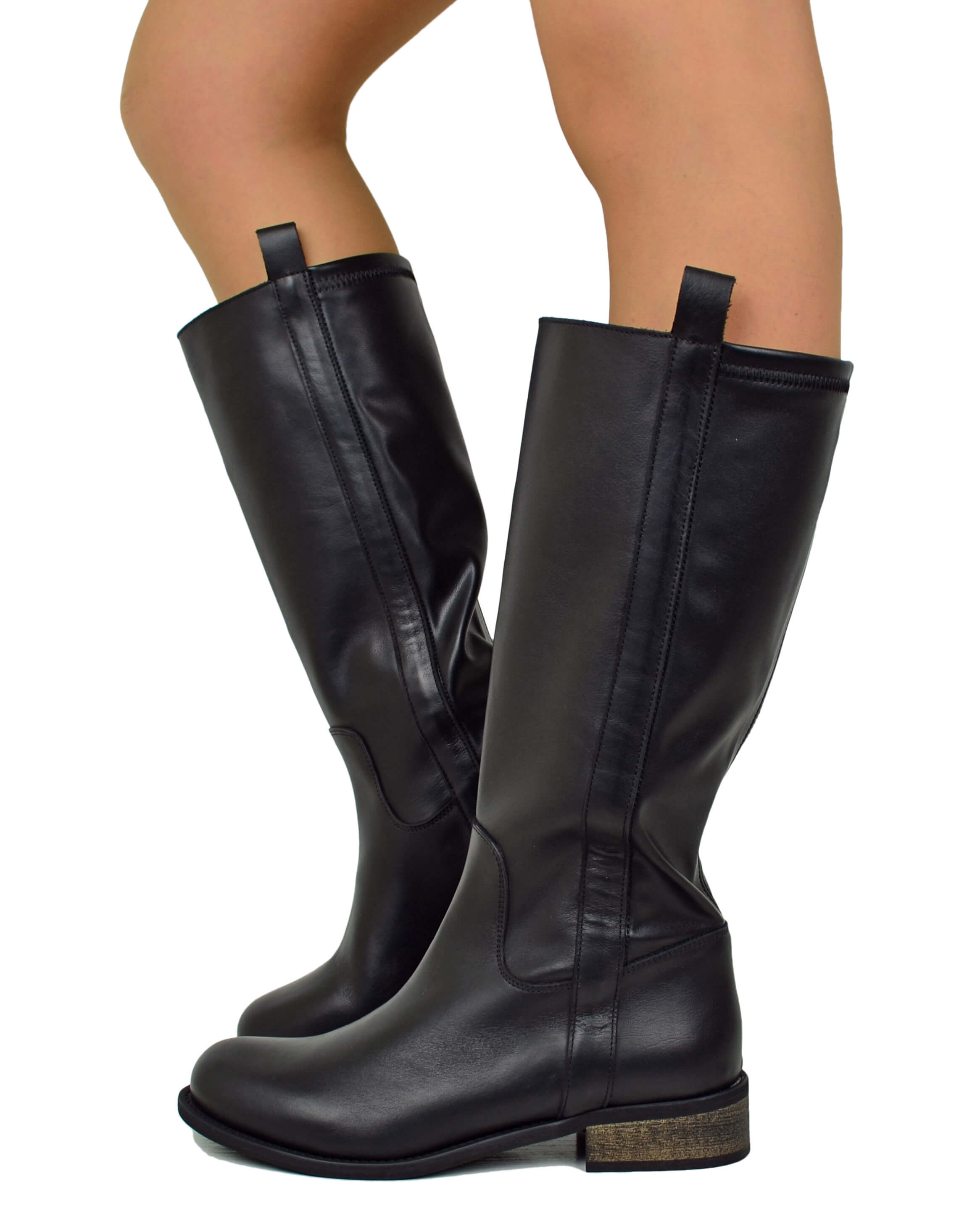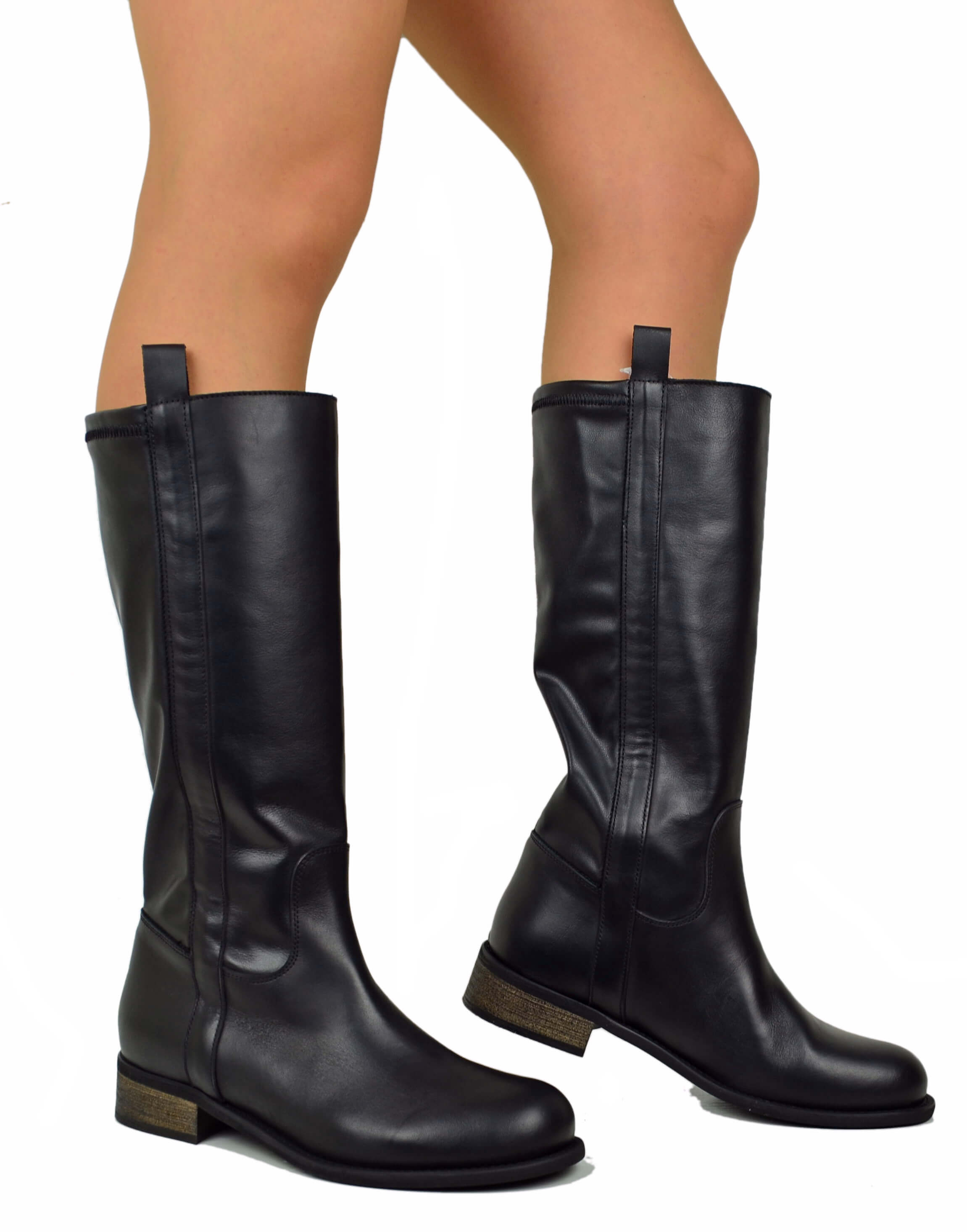 Riding Boots for Curvy Calves – Lightweight Sole, Wide Shaft in Black Genuine Leather