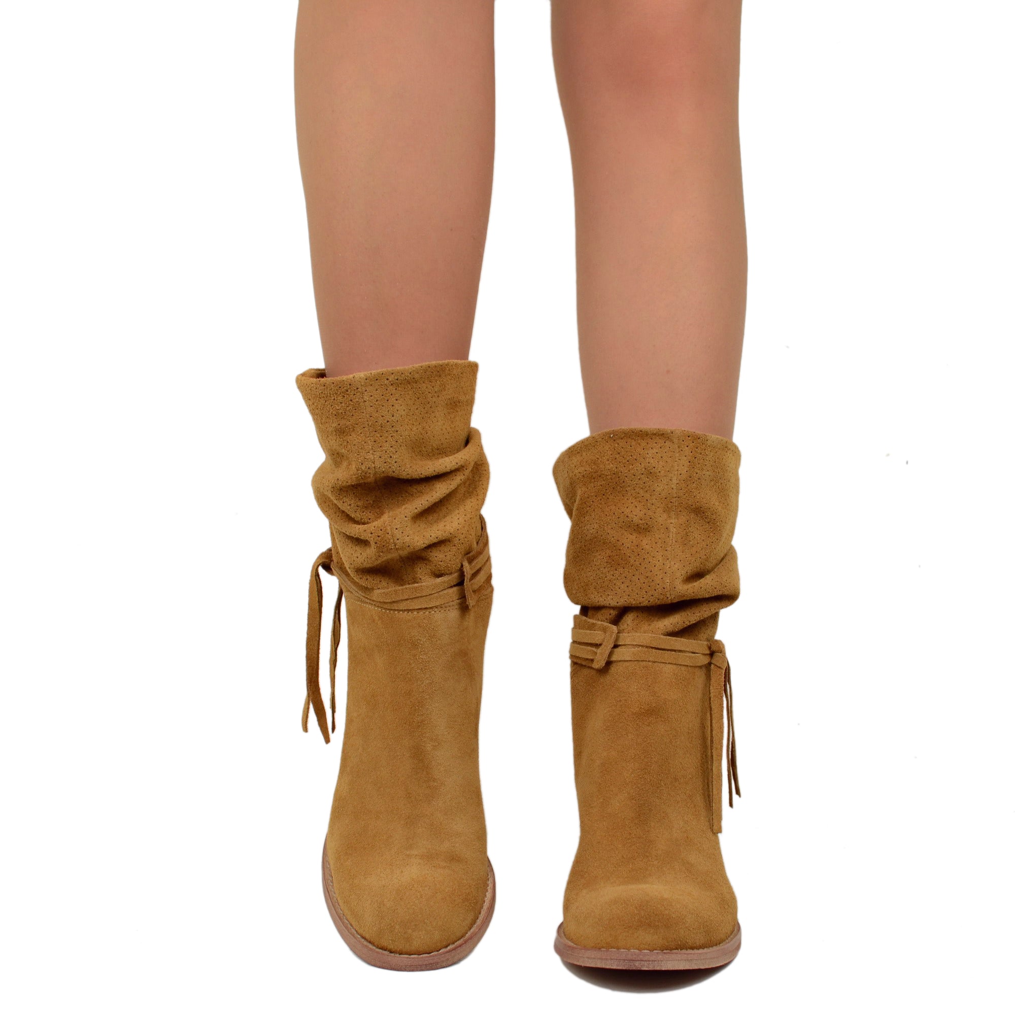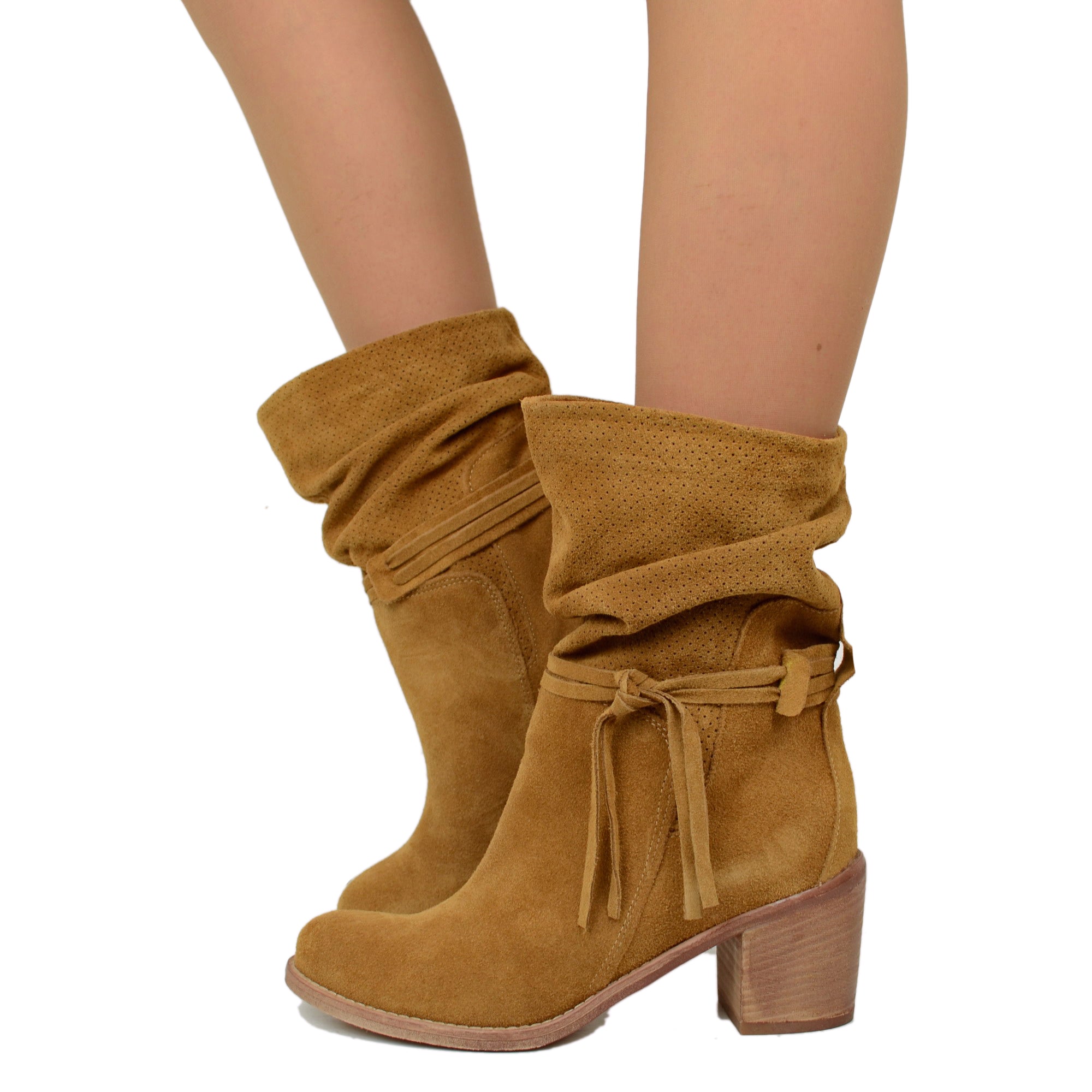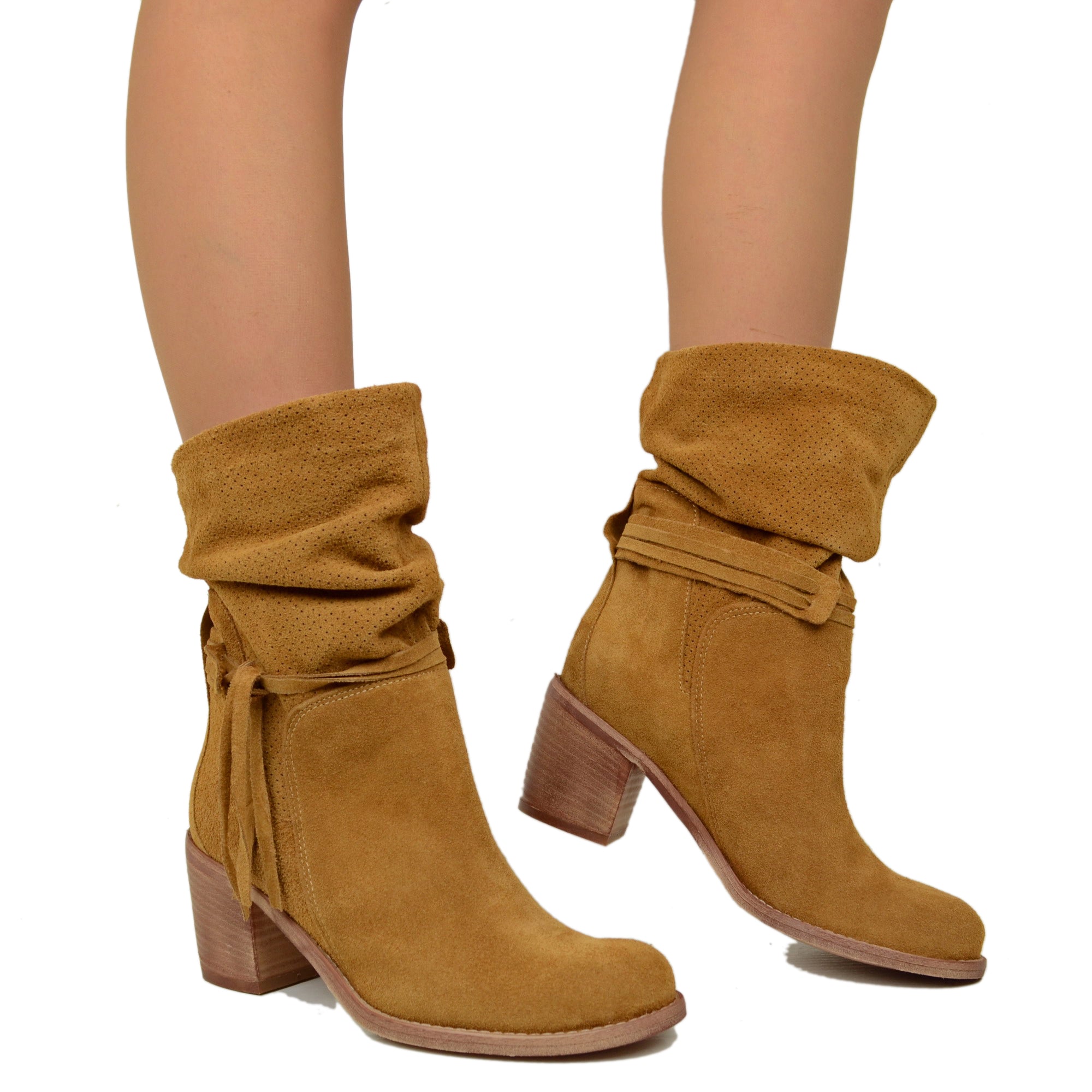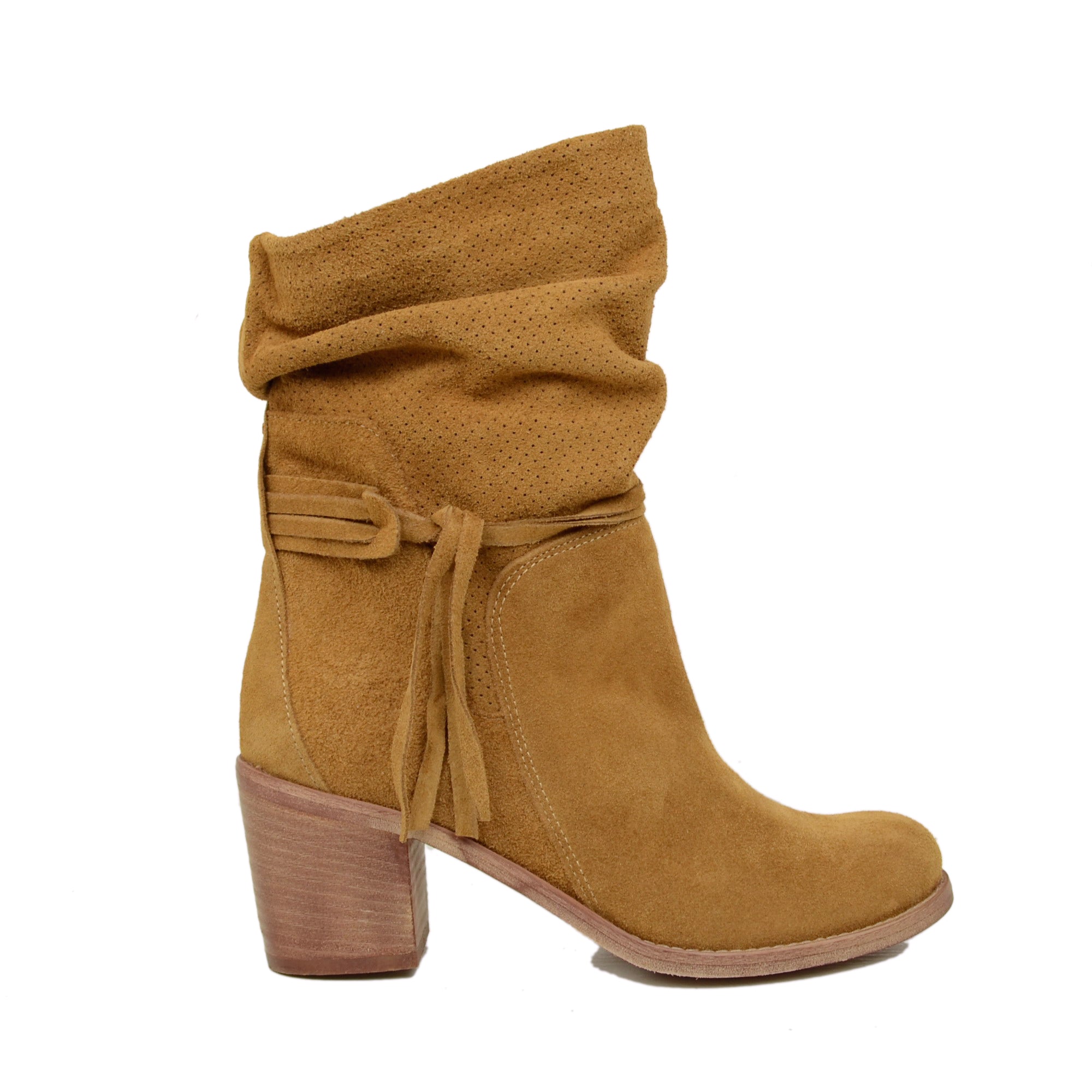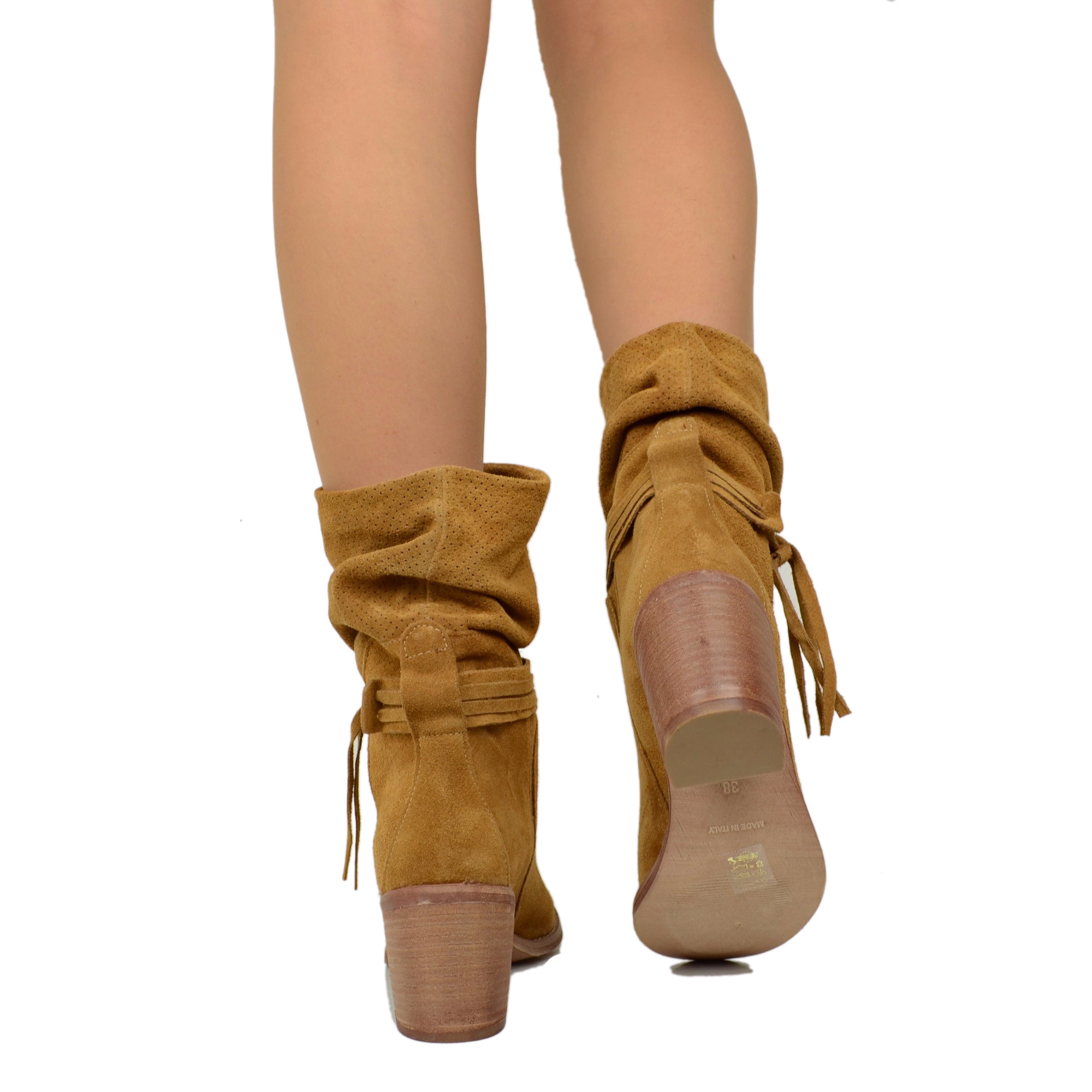 Women's Ankle Boots in Perforated Suede Leather Made in Italy