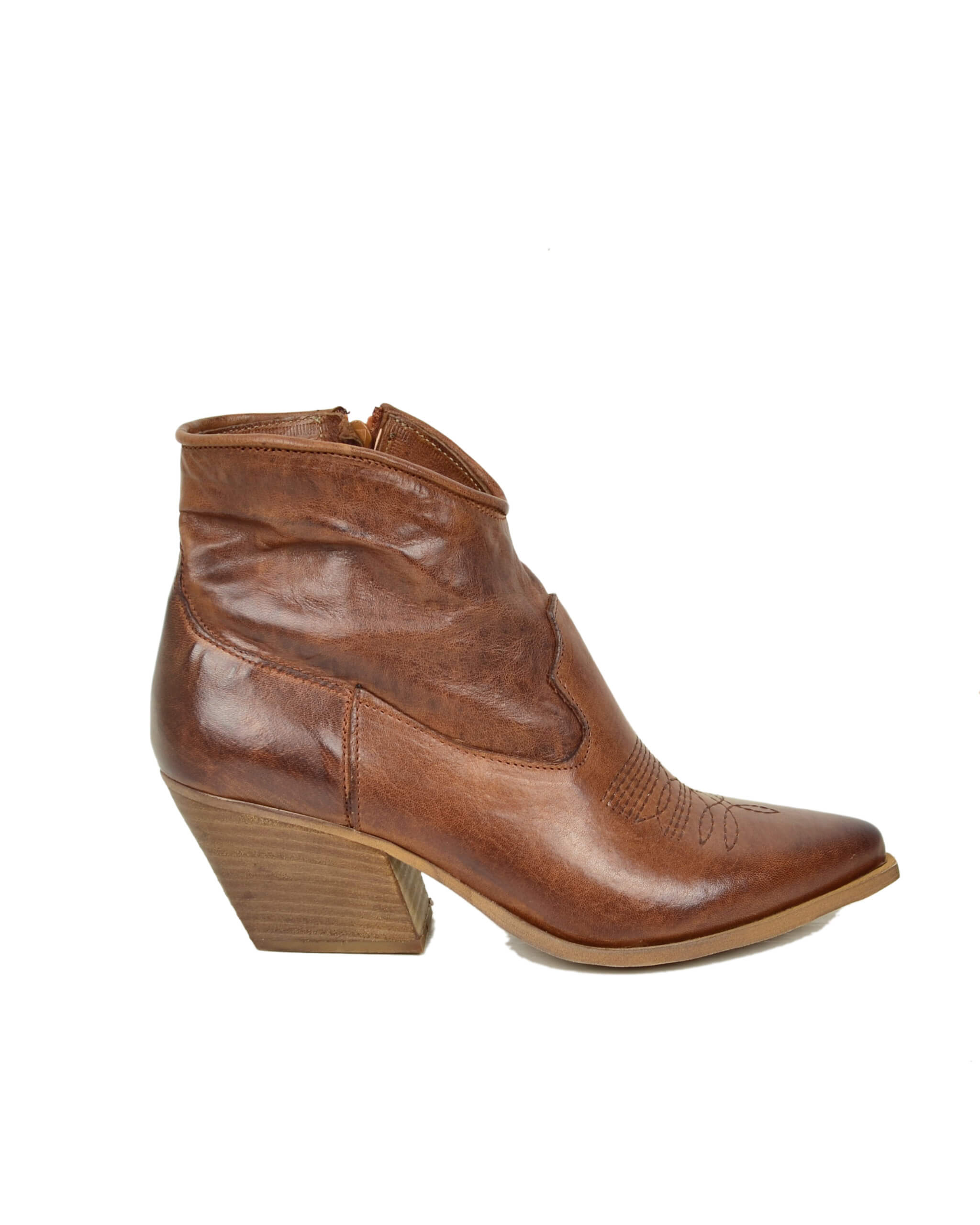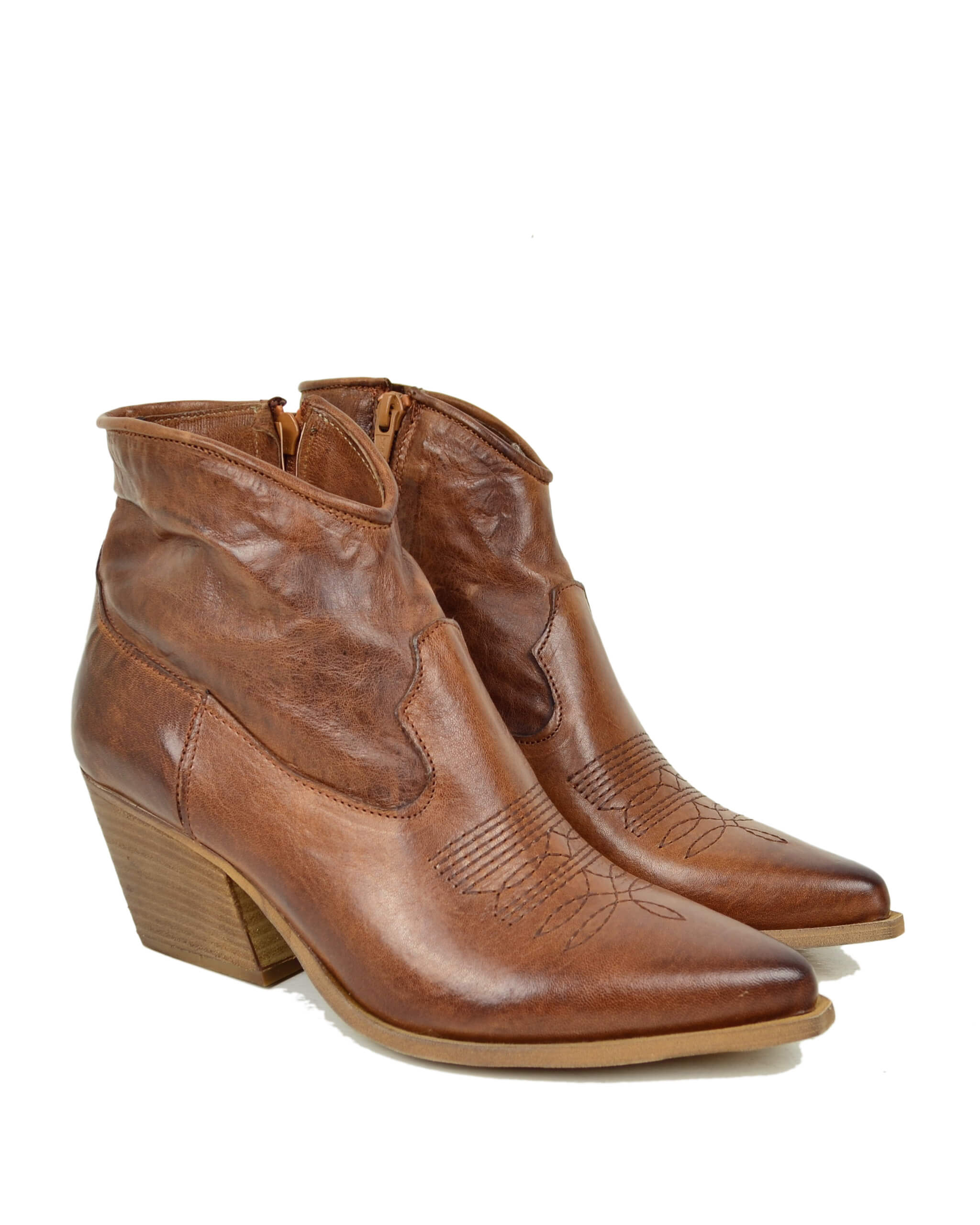 Stivaletti Texani Donna alla Caviglia in Vera Pelle Rag Cuoio Vintage Made in Italy