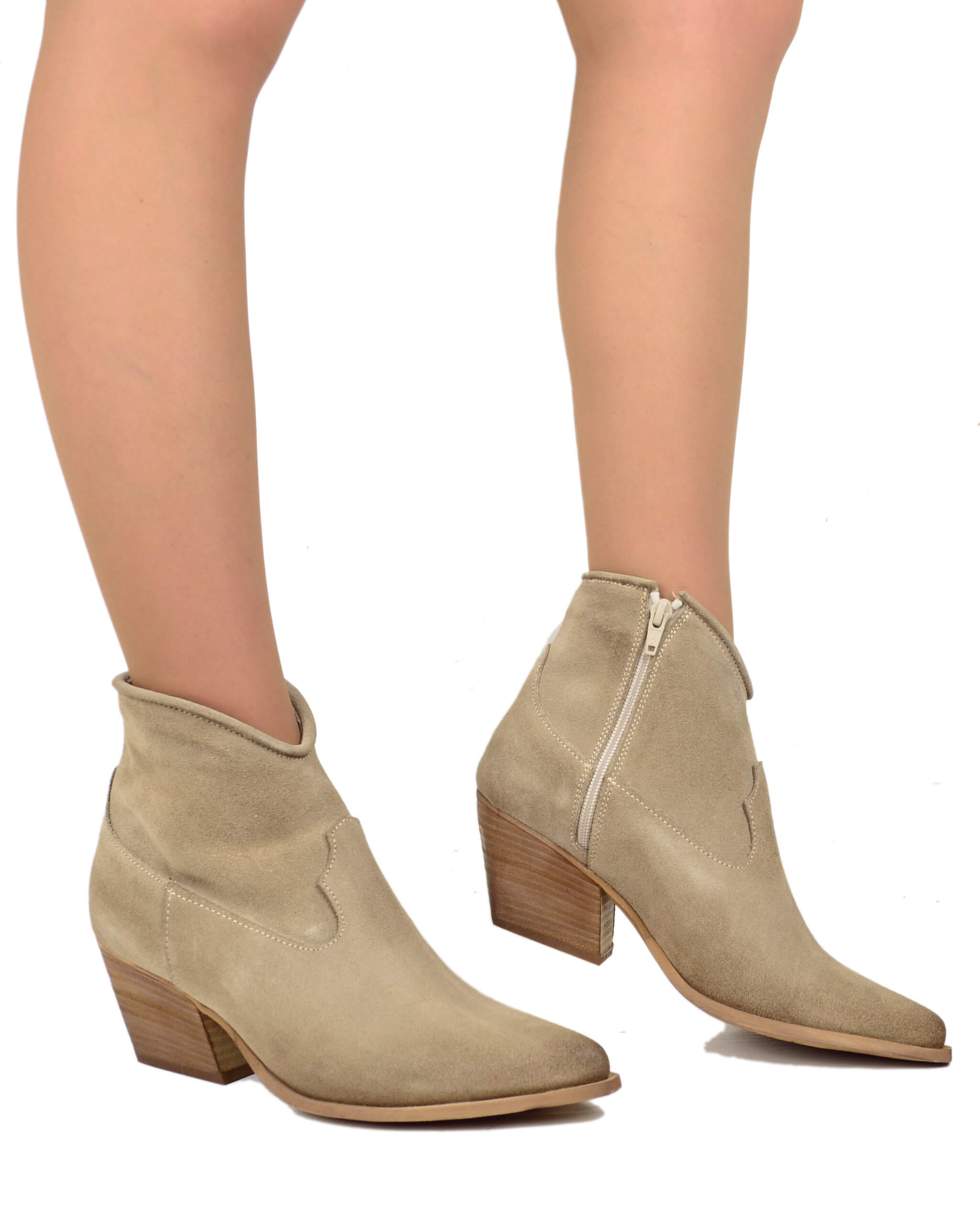 Stivaletti Texanini alla Caviglia Donna in Pelle Scamosciata Mousse