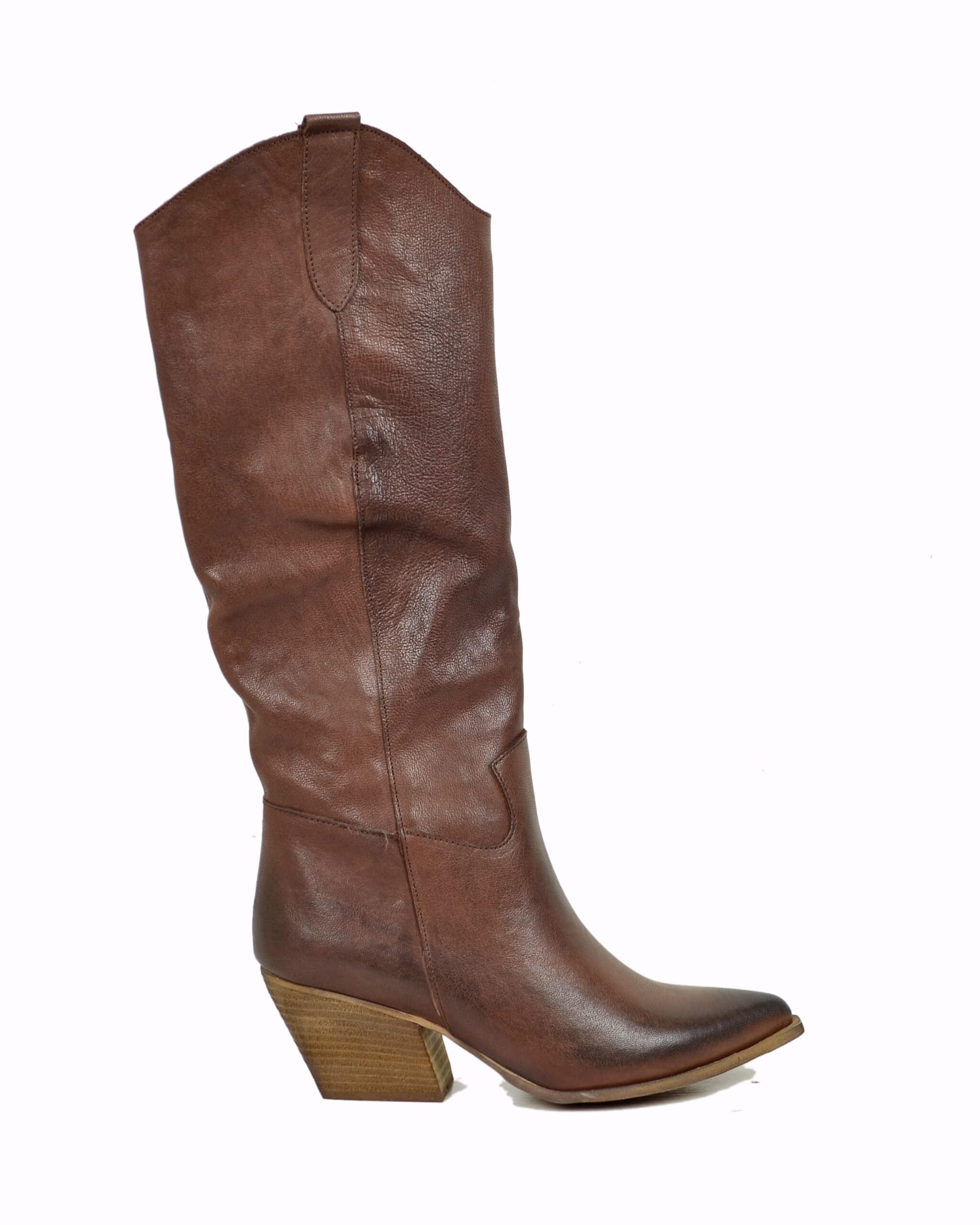 Stivali Texani Alti Tacco 7 cm Pelle Marrone Rag Cioccolato Cowboy boots
