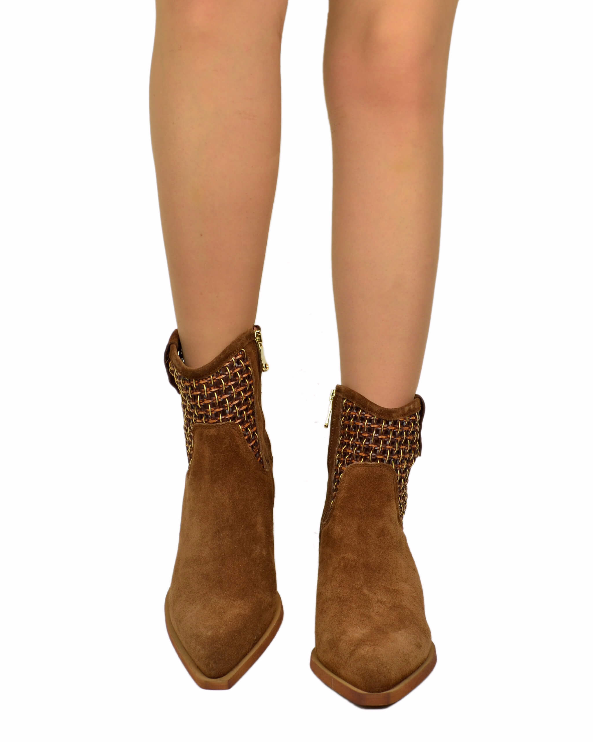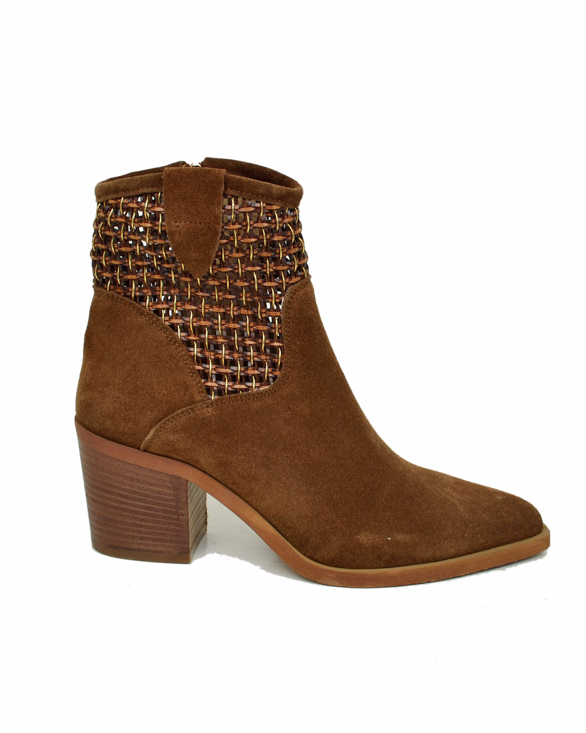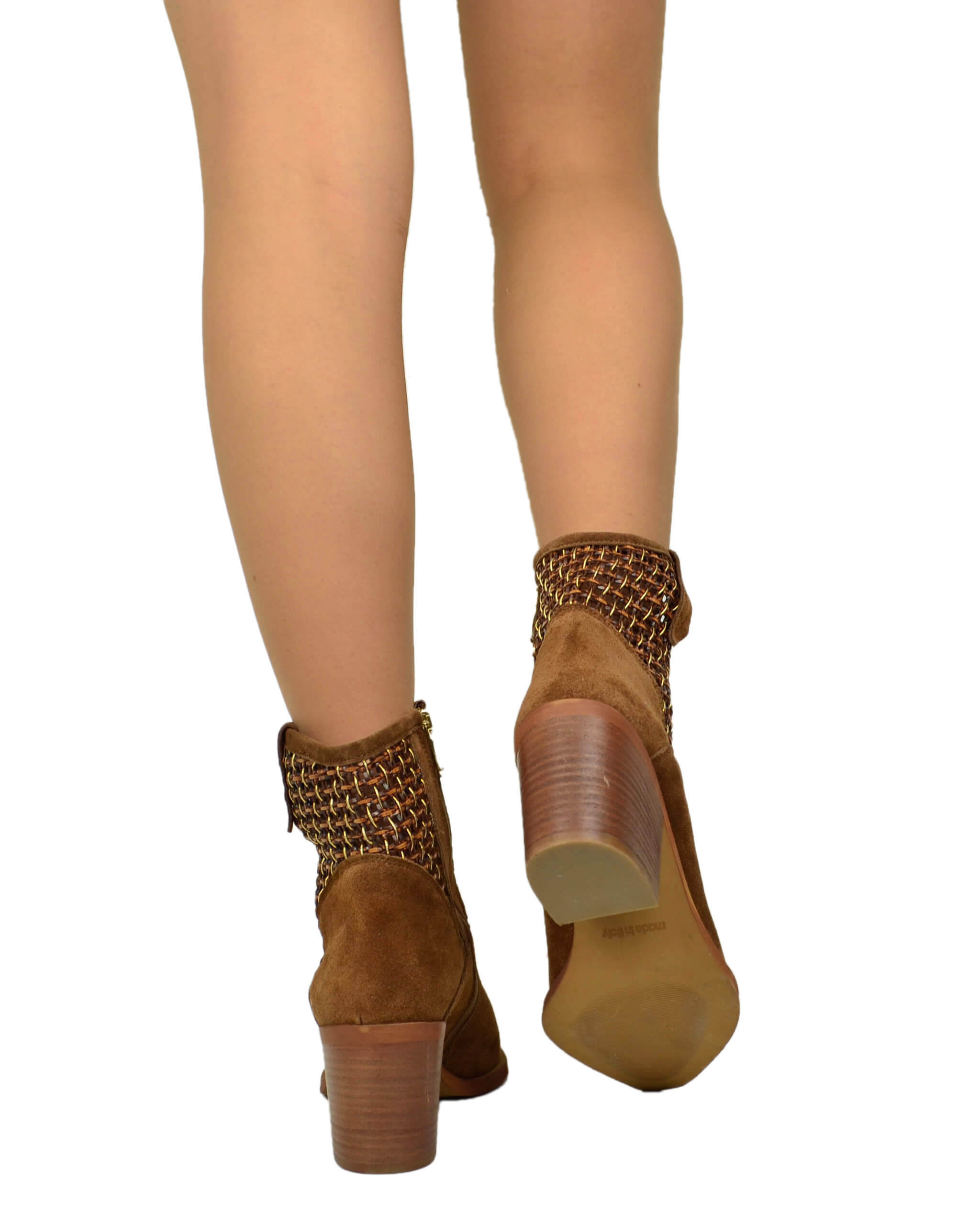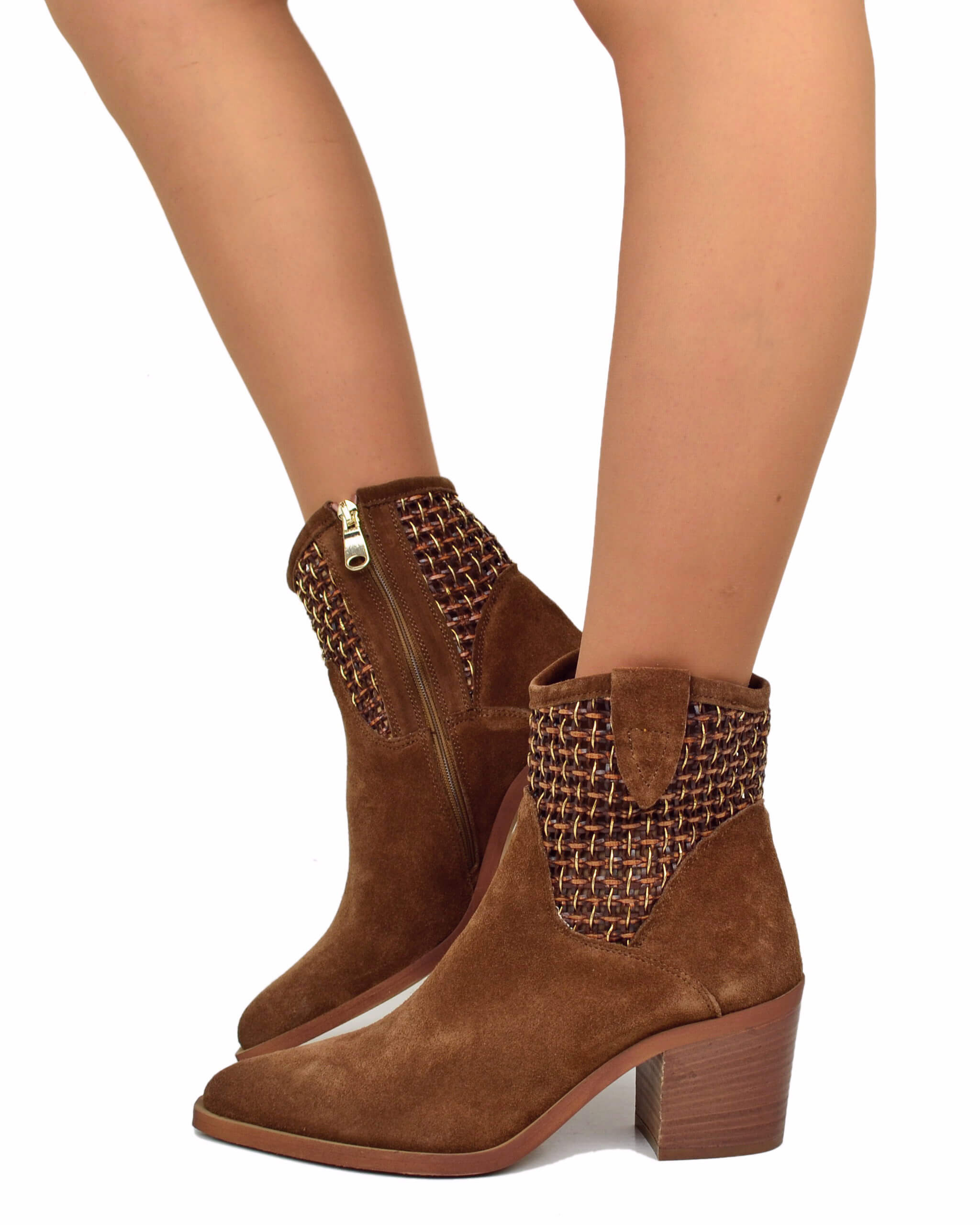 Bottines élégantes en daim tressé cuoio, talon large 7 cm