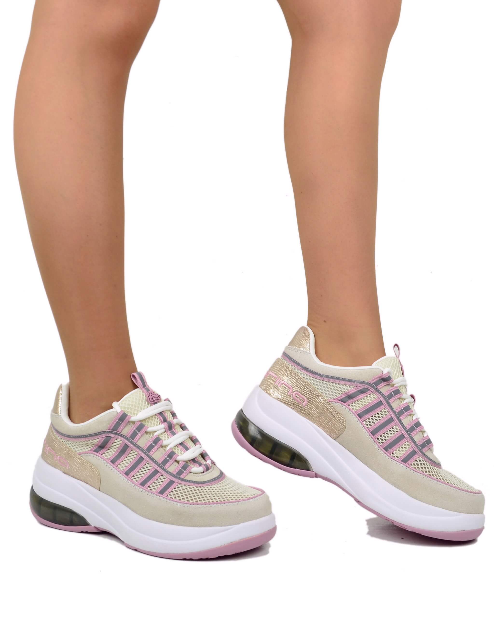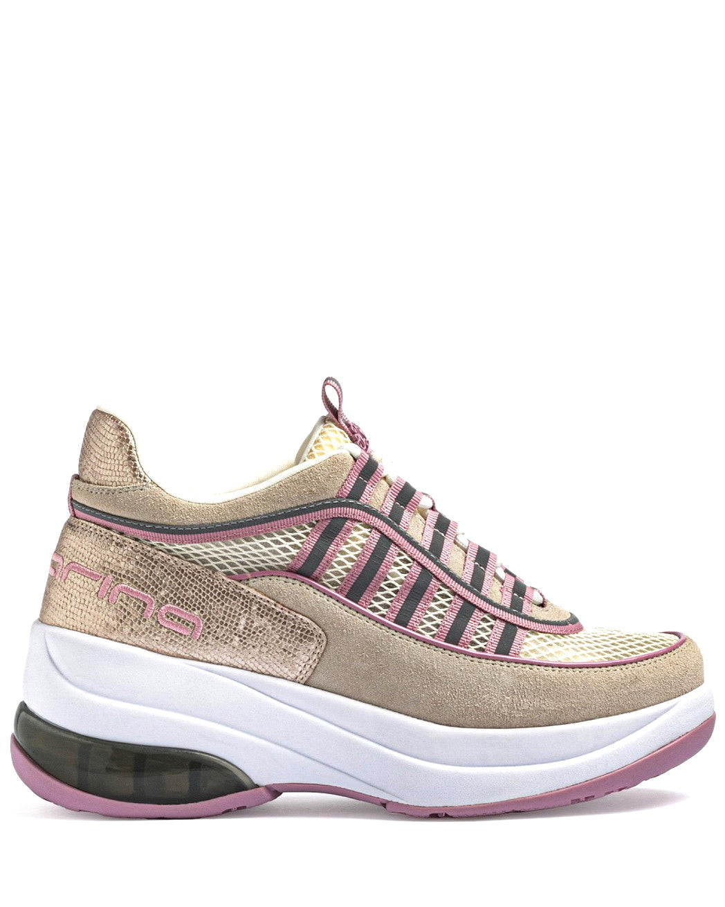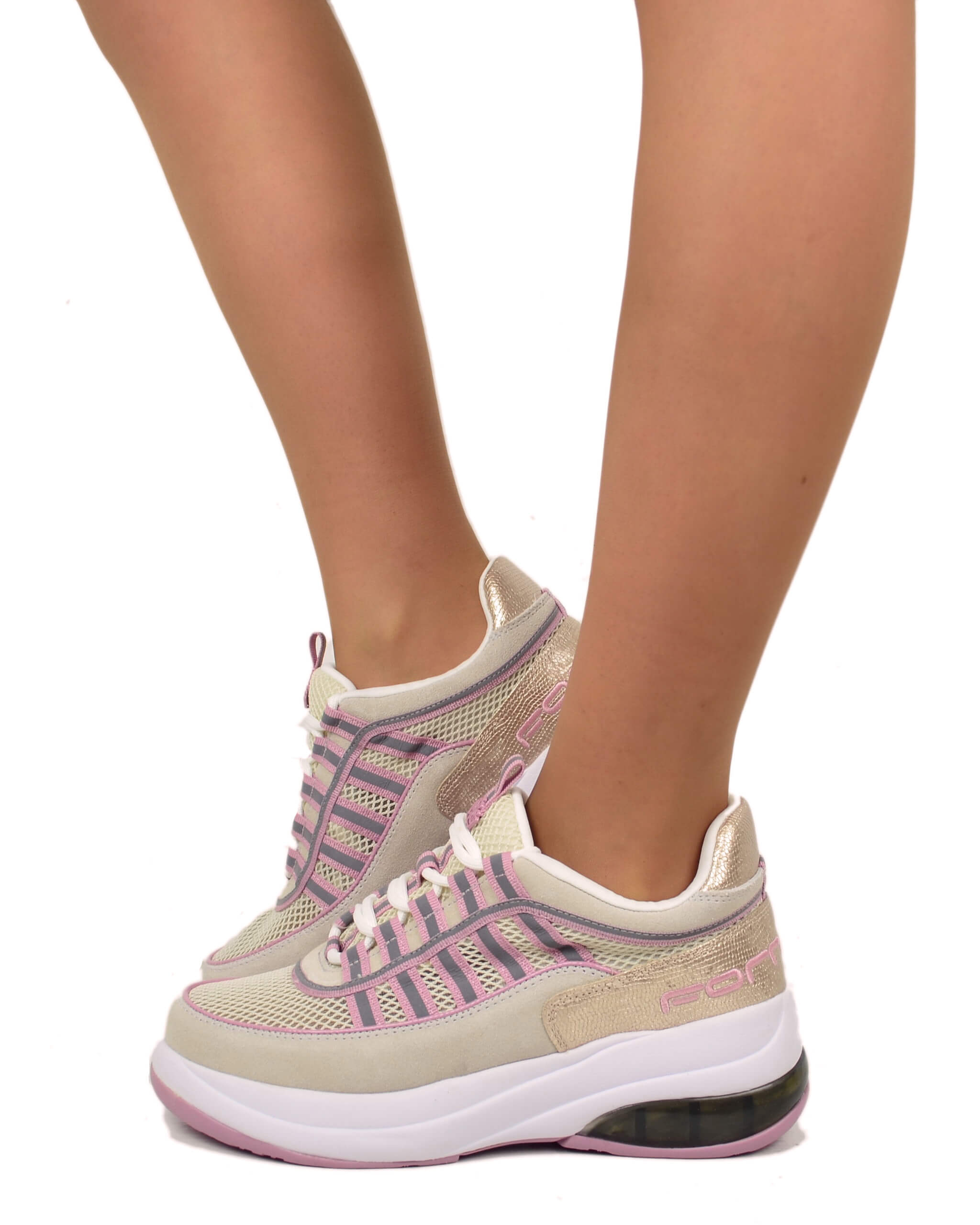 Fornarina Bubble à lacets, plateforme compensée “UP” sable & rose – Style original années 90