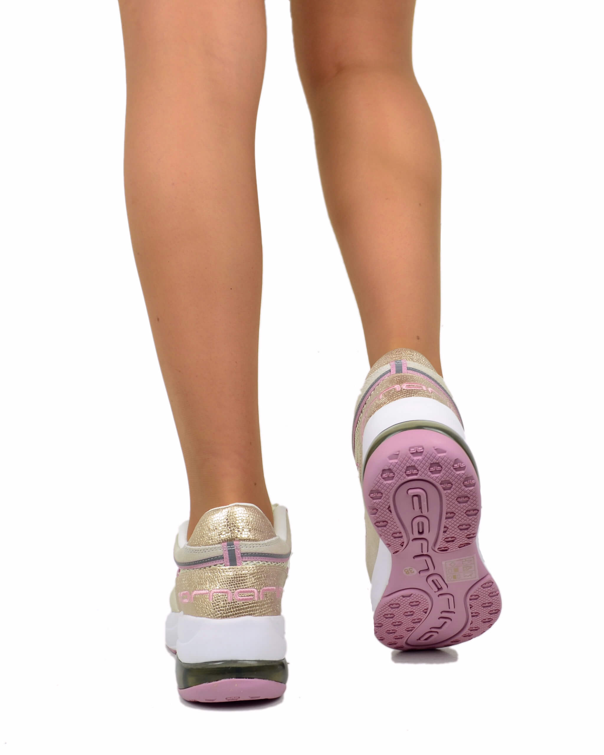 BACK TO THE 90’s ! Avec ces originales Fornarina Bubble à lacets, plateforme compensée “UP” en sable & rose (détails platine). Le talon compensé vous offre quelques centimètres en plus, tandis que les lacets ajoutent une touche de féminité. À porter avec toutes vos tenues pour un look unique et tendance.