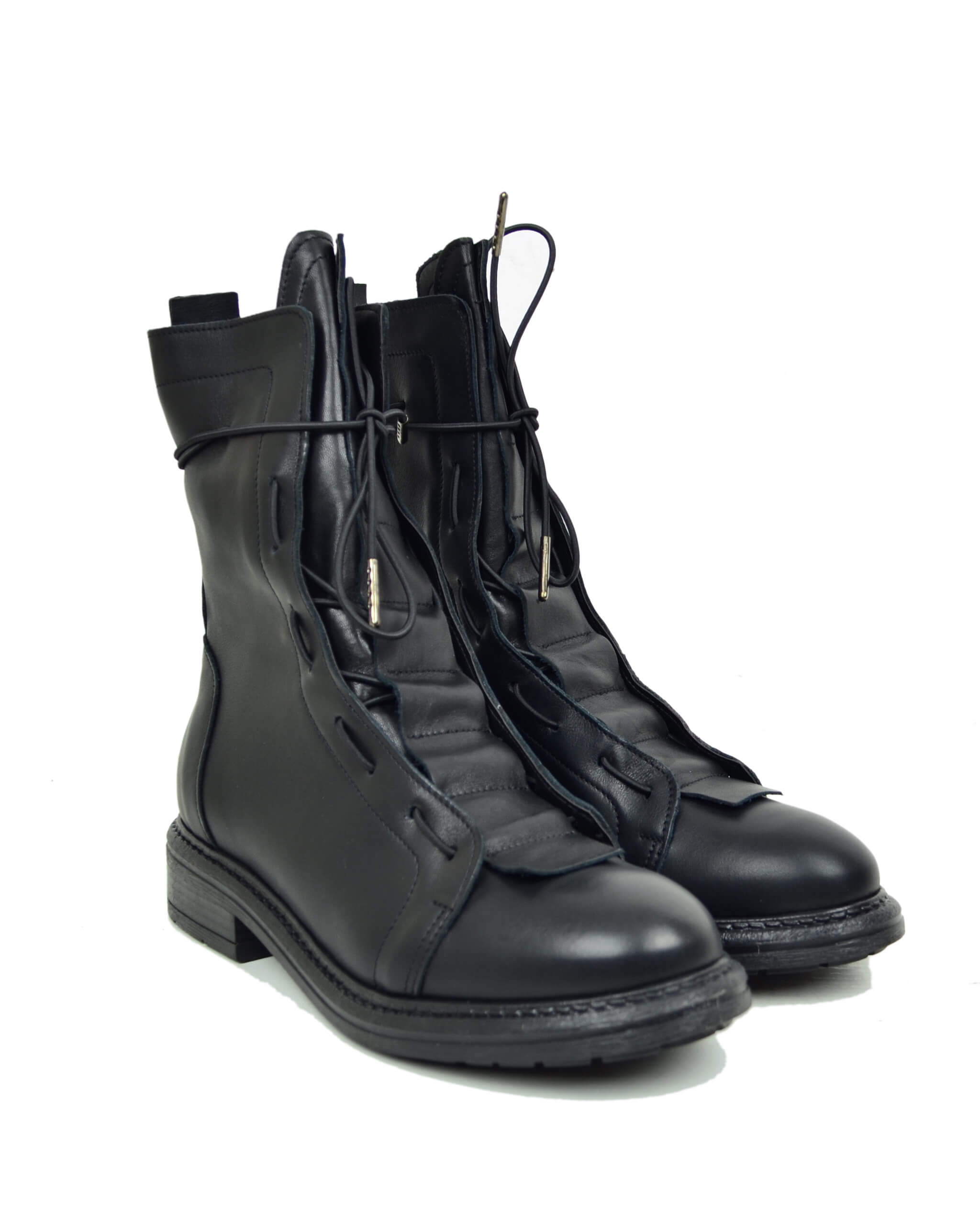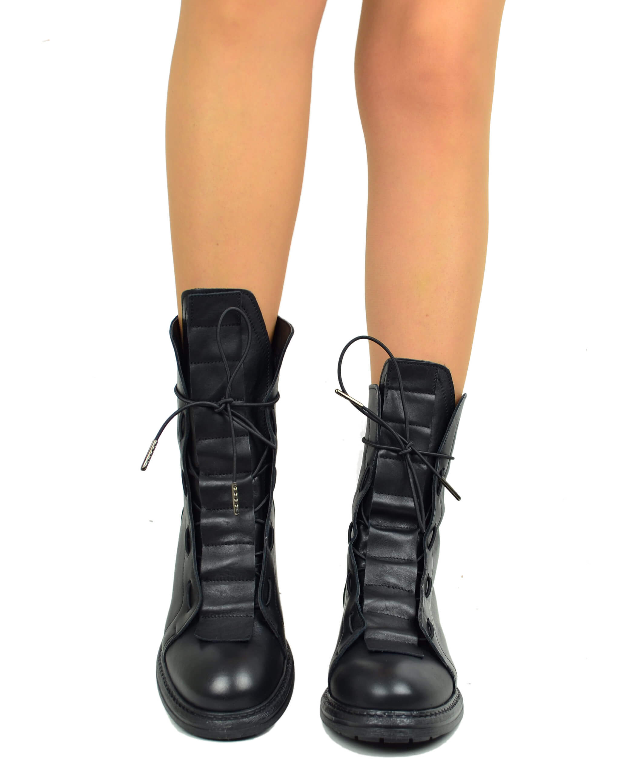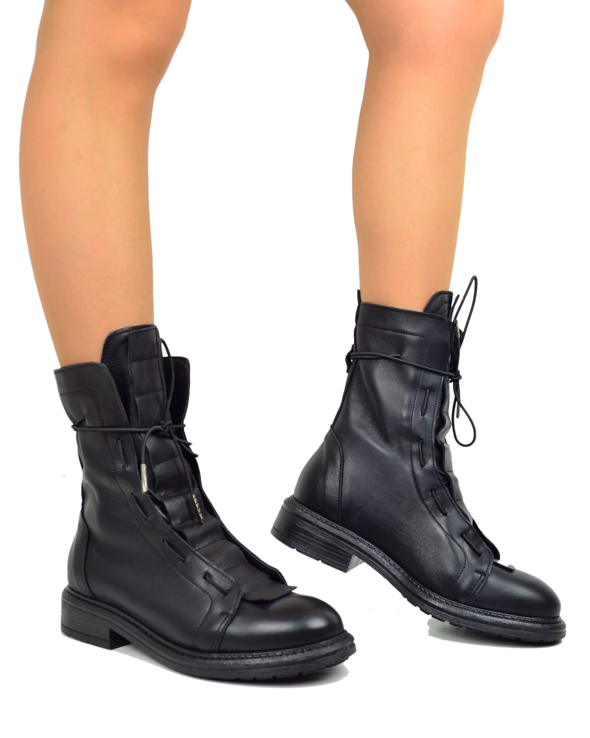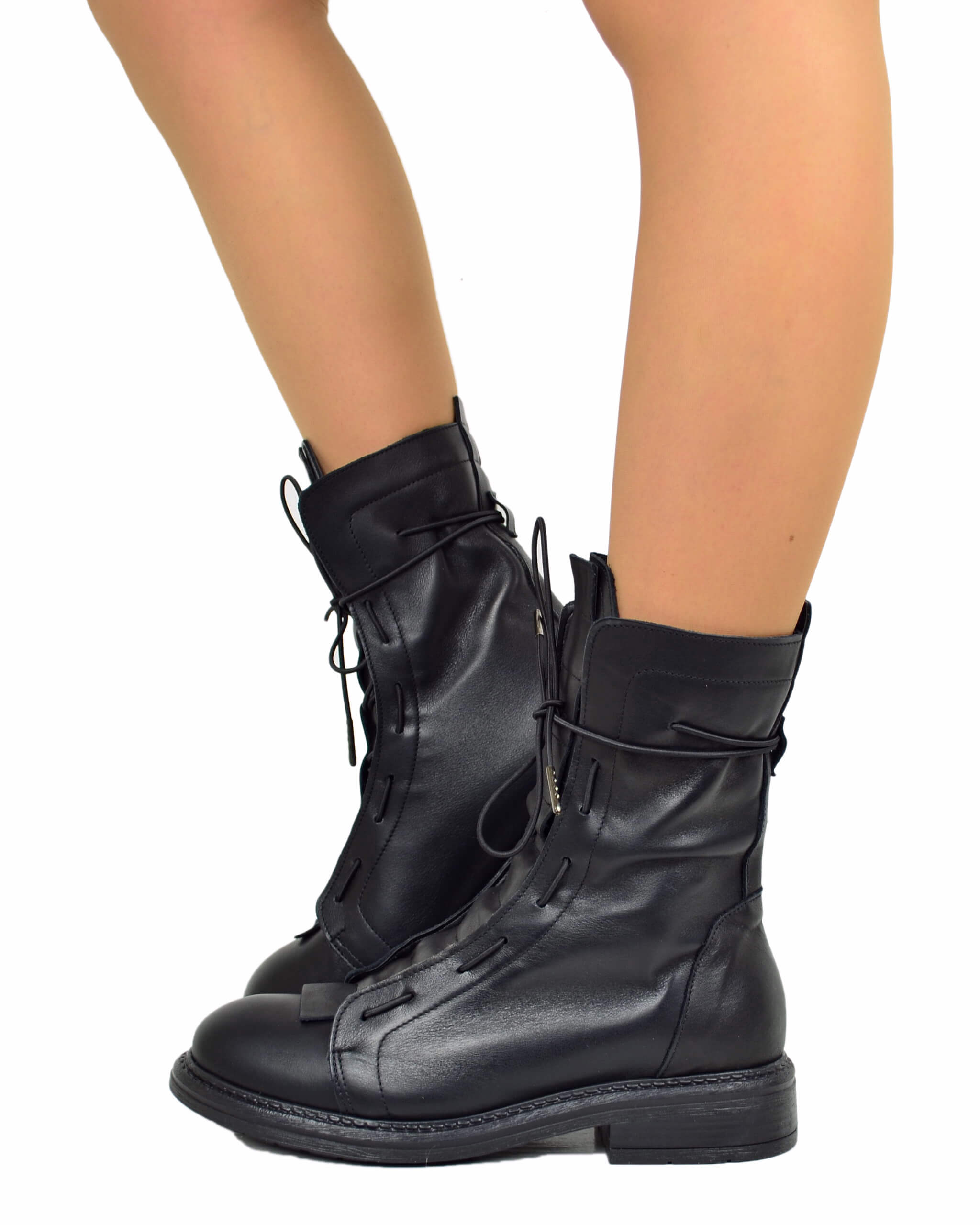 Anfibi Stringati con Laccio Elasticizzato Fondo Gomma Vera Pelle