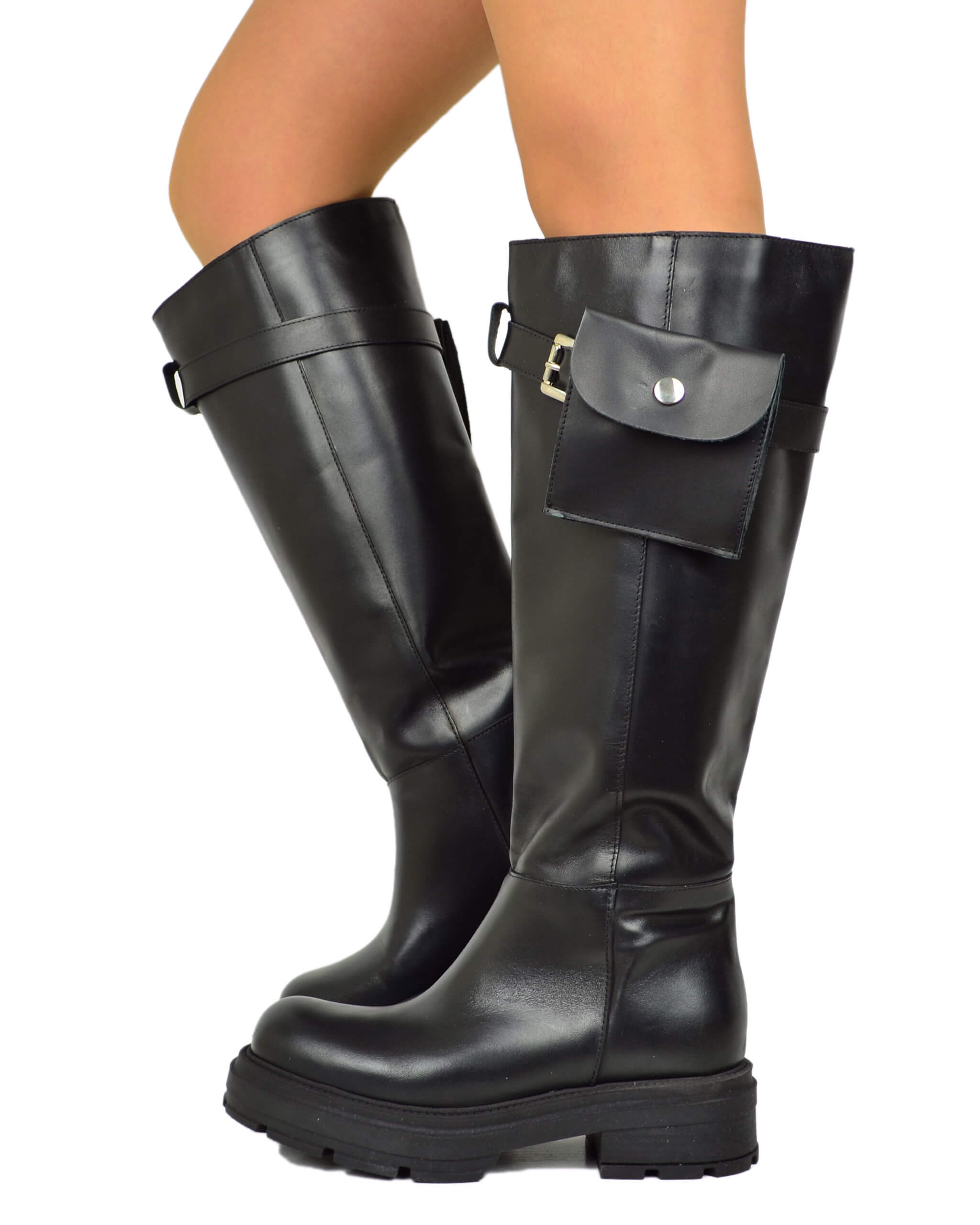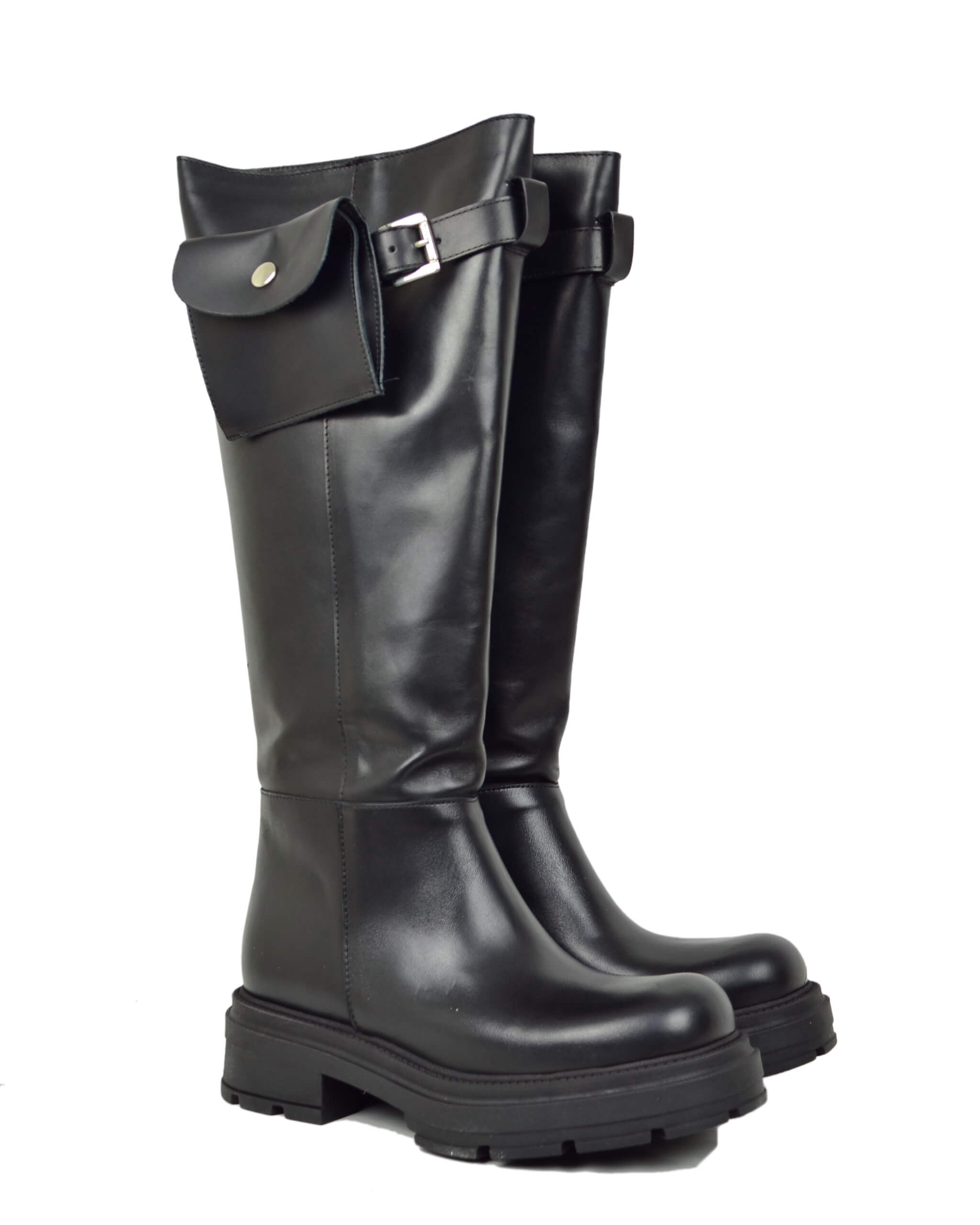 Biker Altissimi con Gambale Largo Taschino Removibile Vera Pelle DIVINE FOLLIE