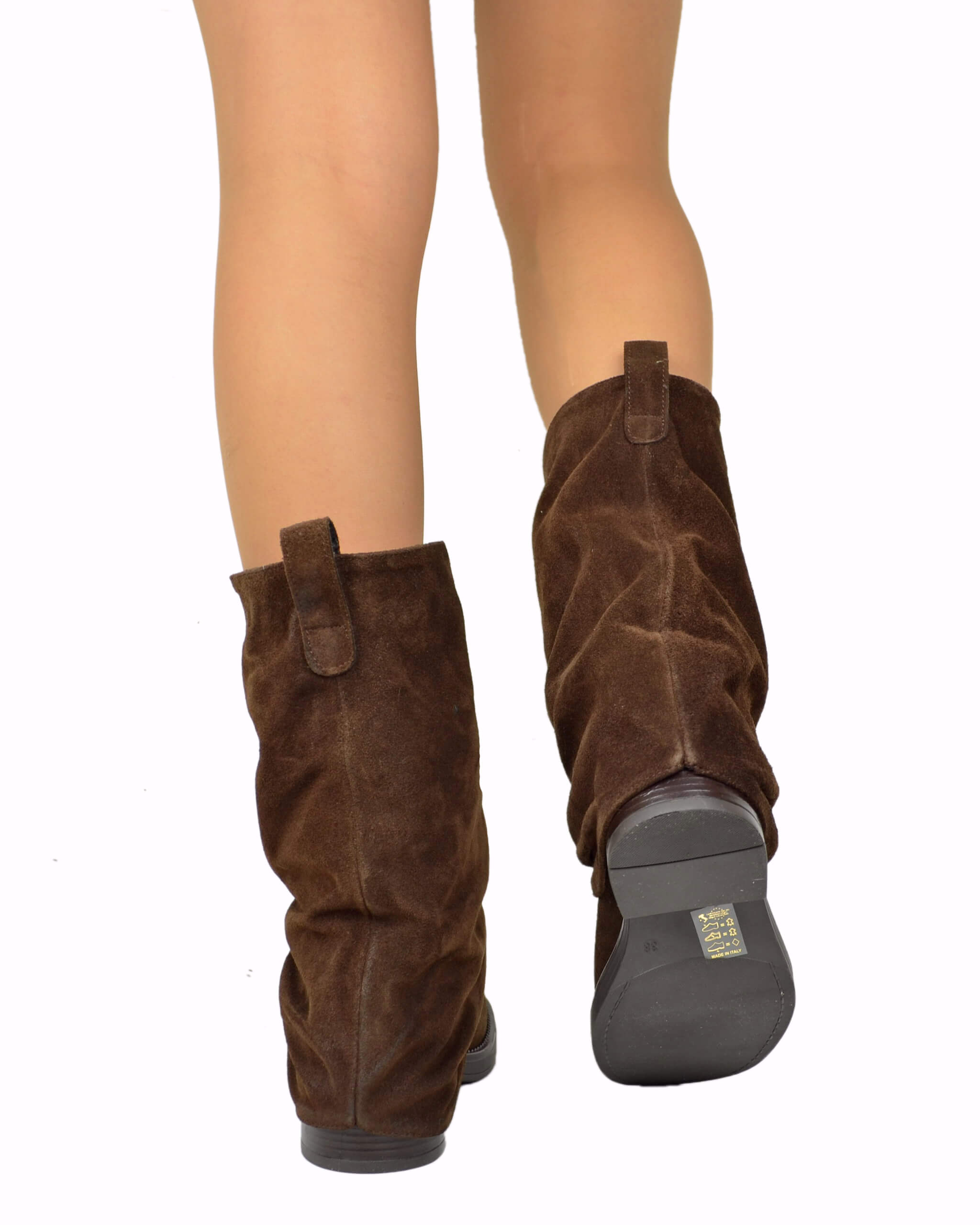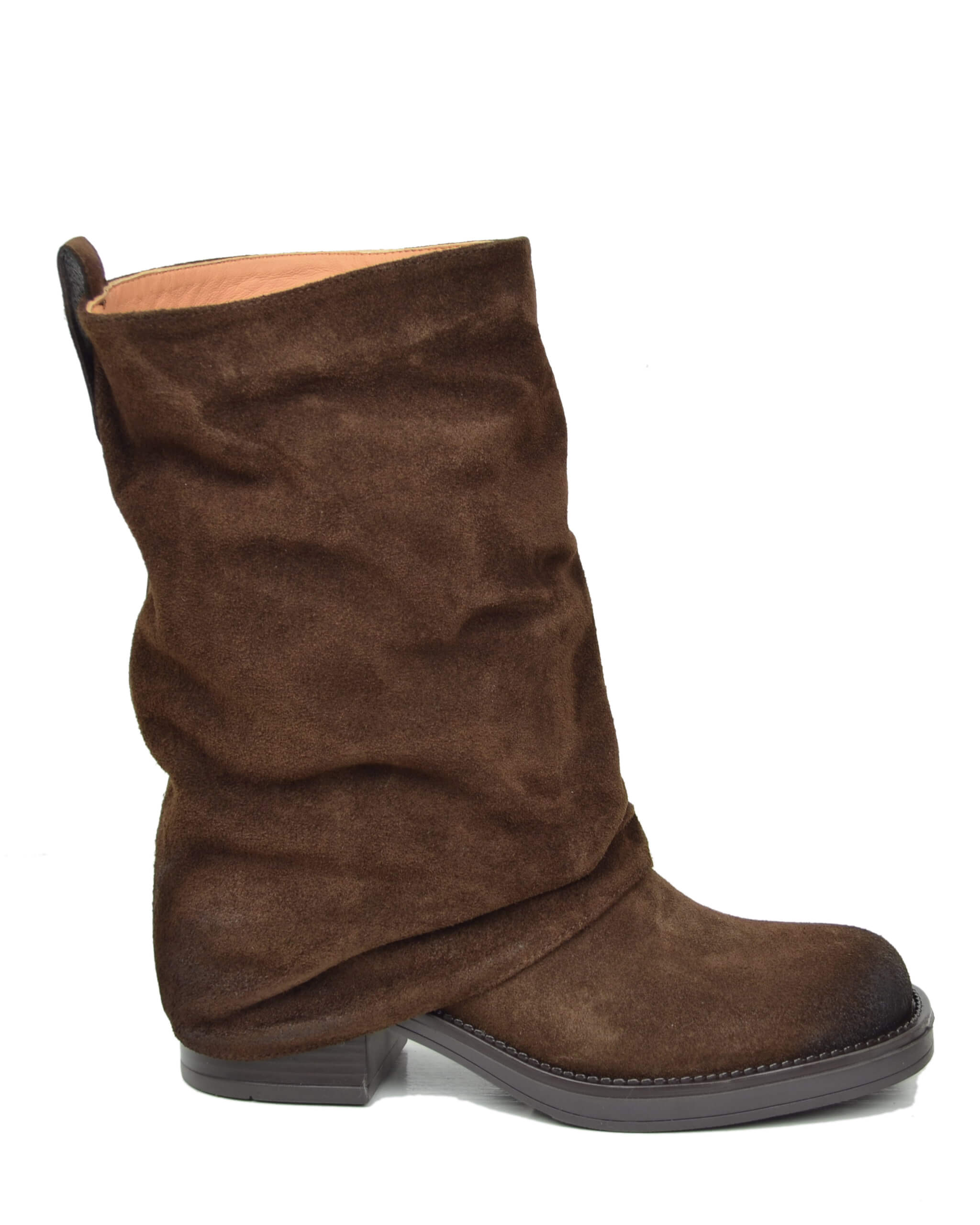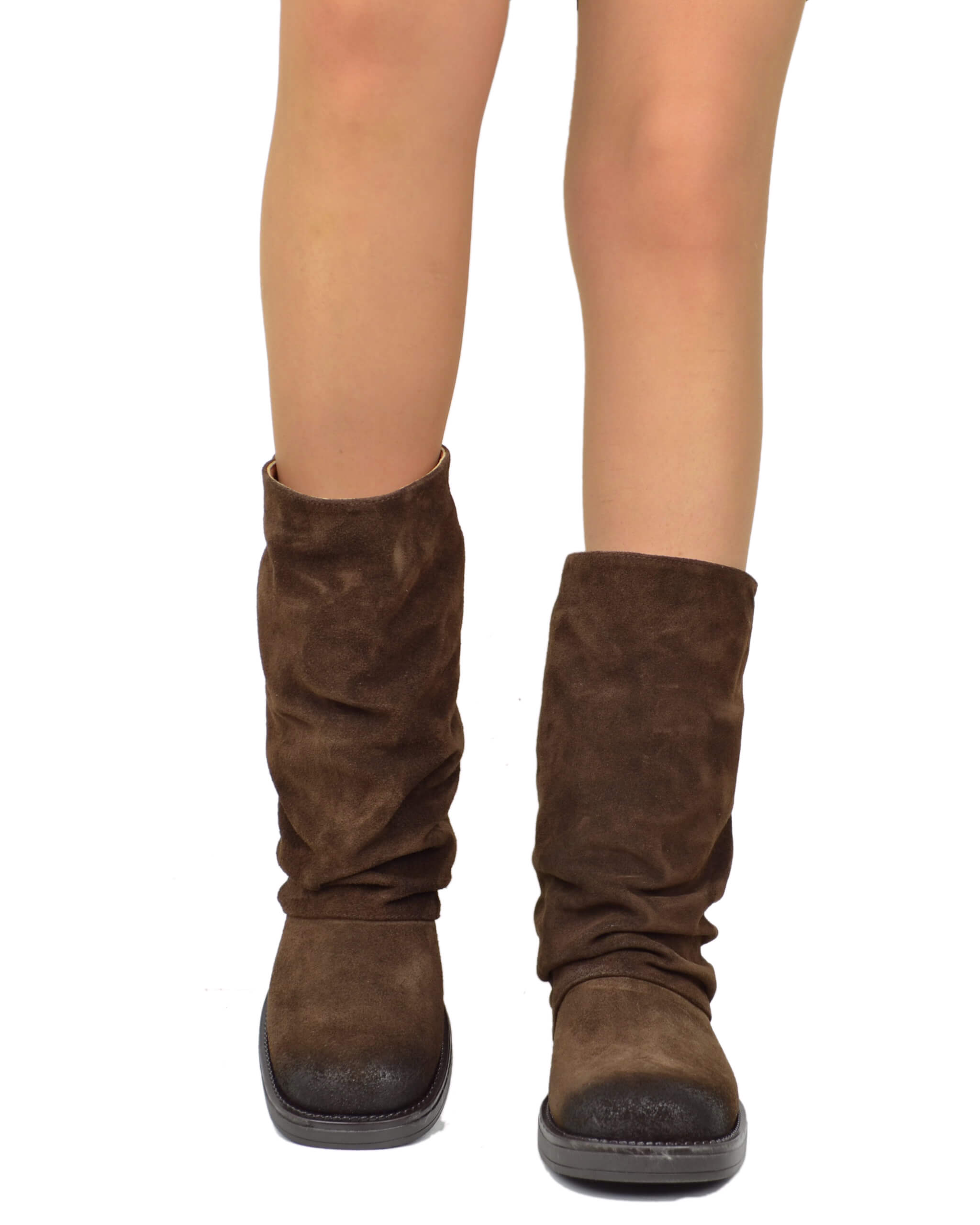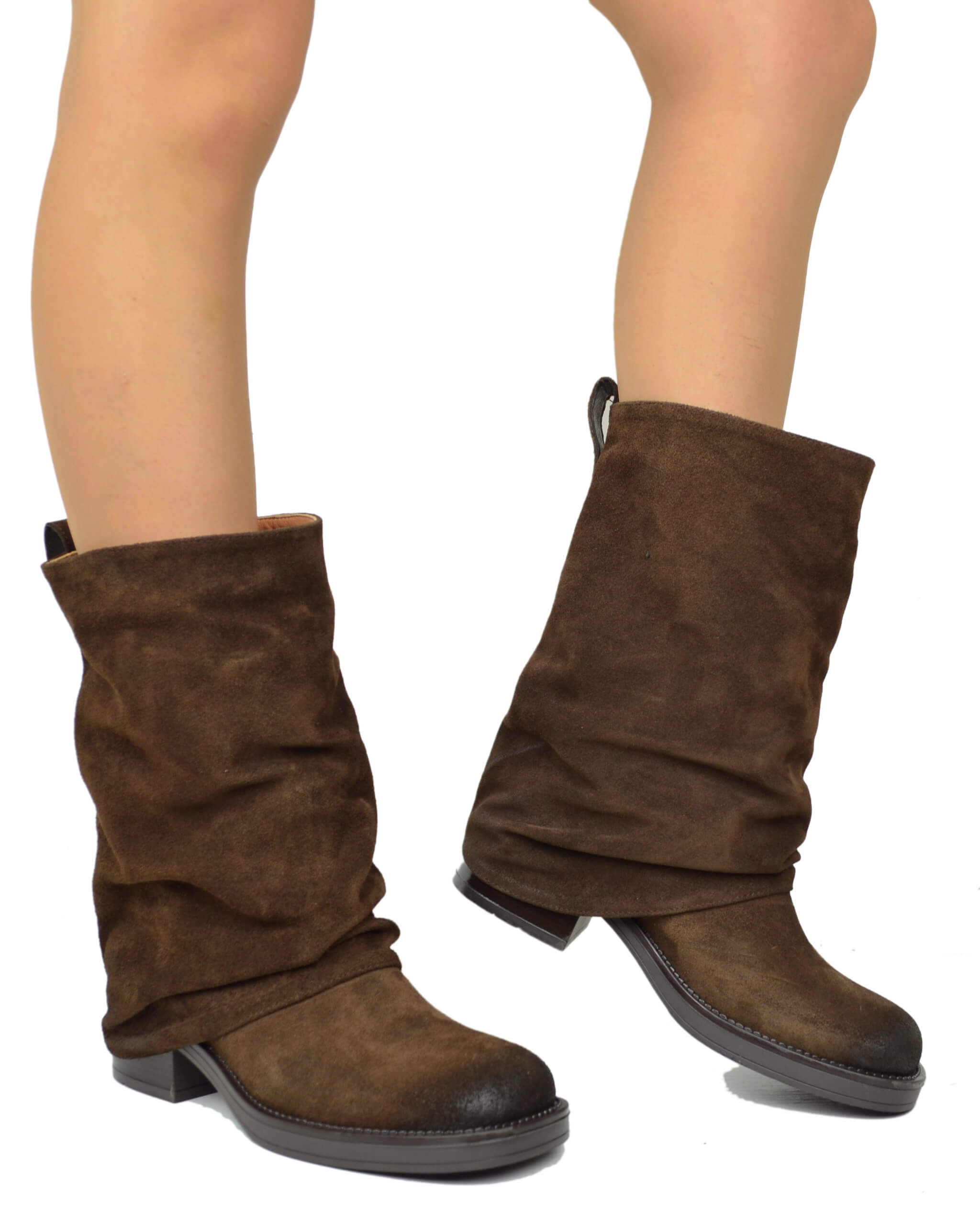Biker con Ghetta Punta Quadrata Mid-High Pelle Scamosciata Testa di Moro