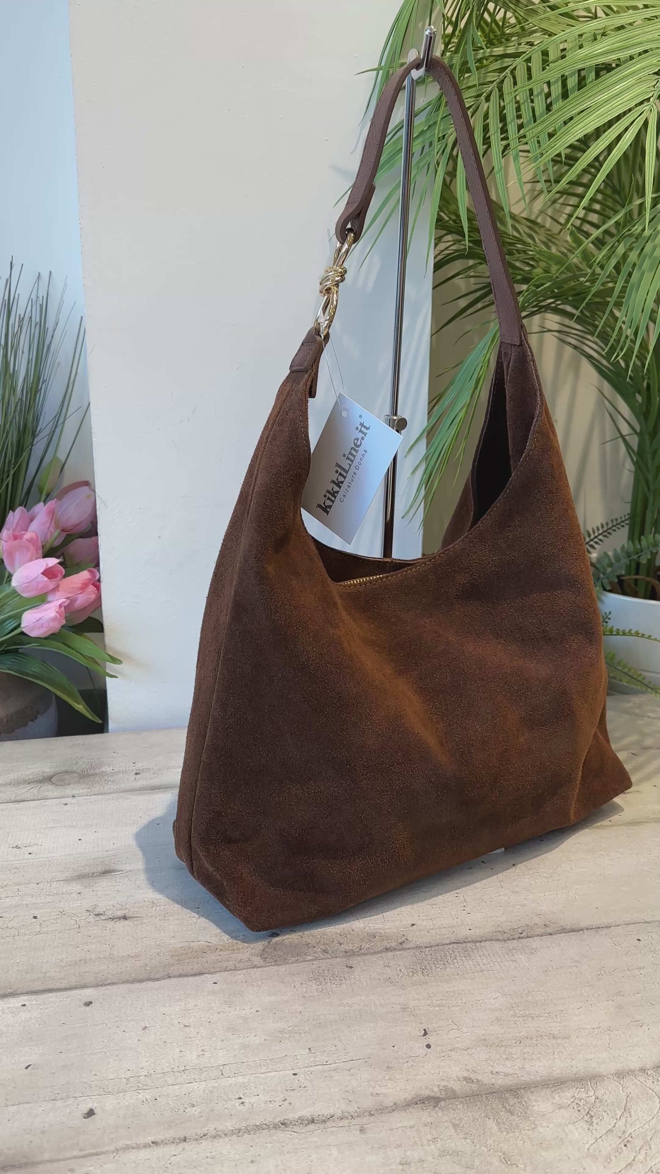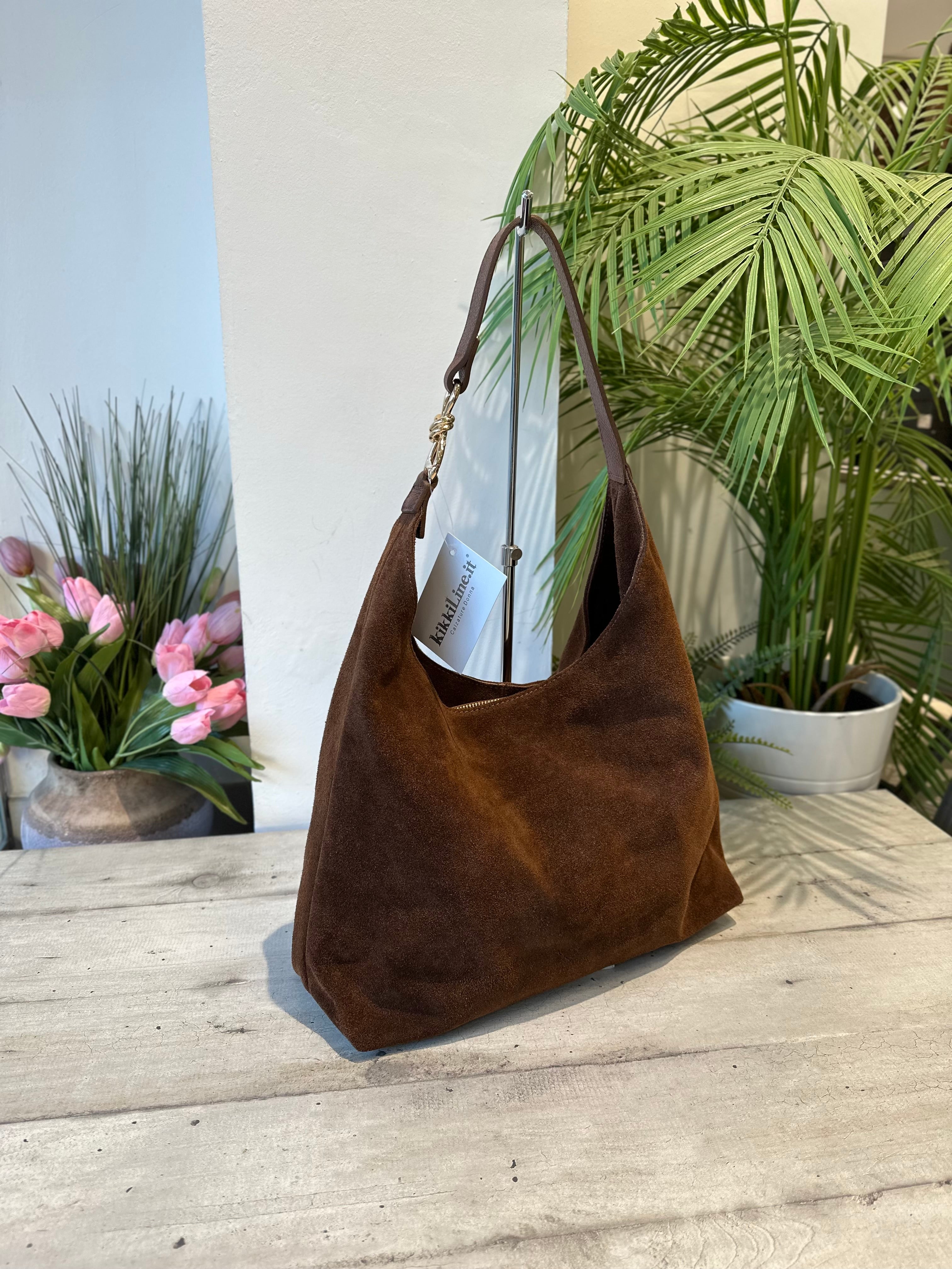 Borsa a Spalla a Sacca in Vera Pelle scamosciata Bagus Cuoio