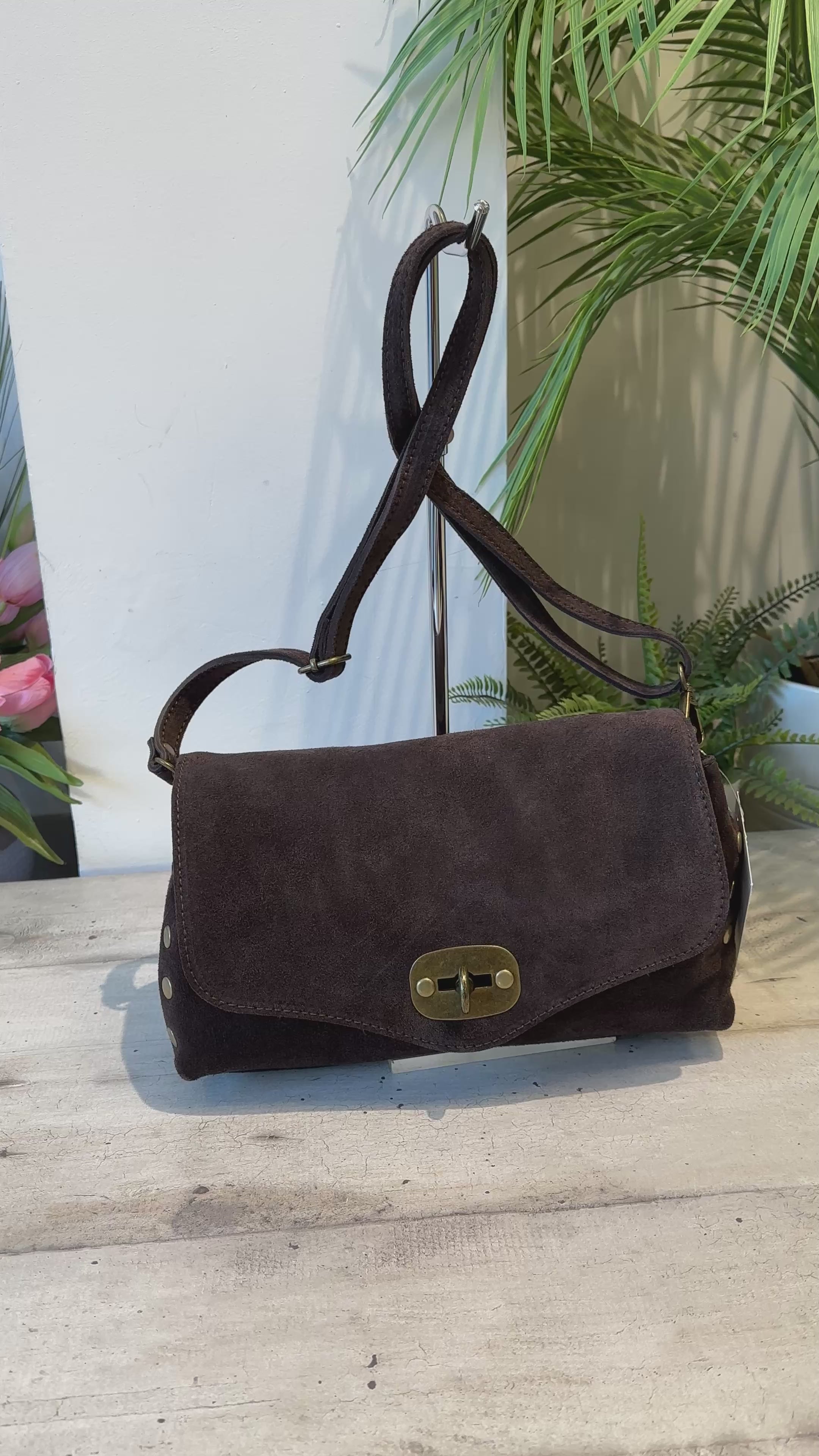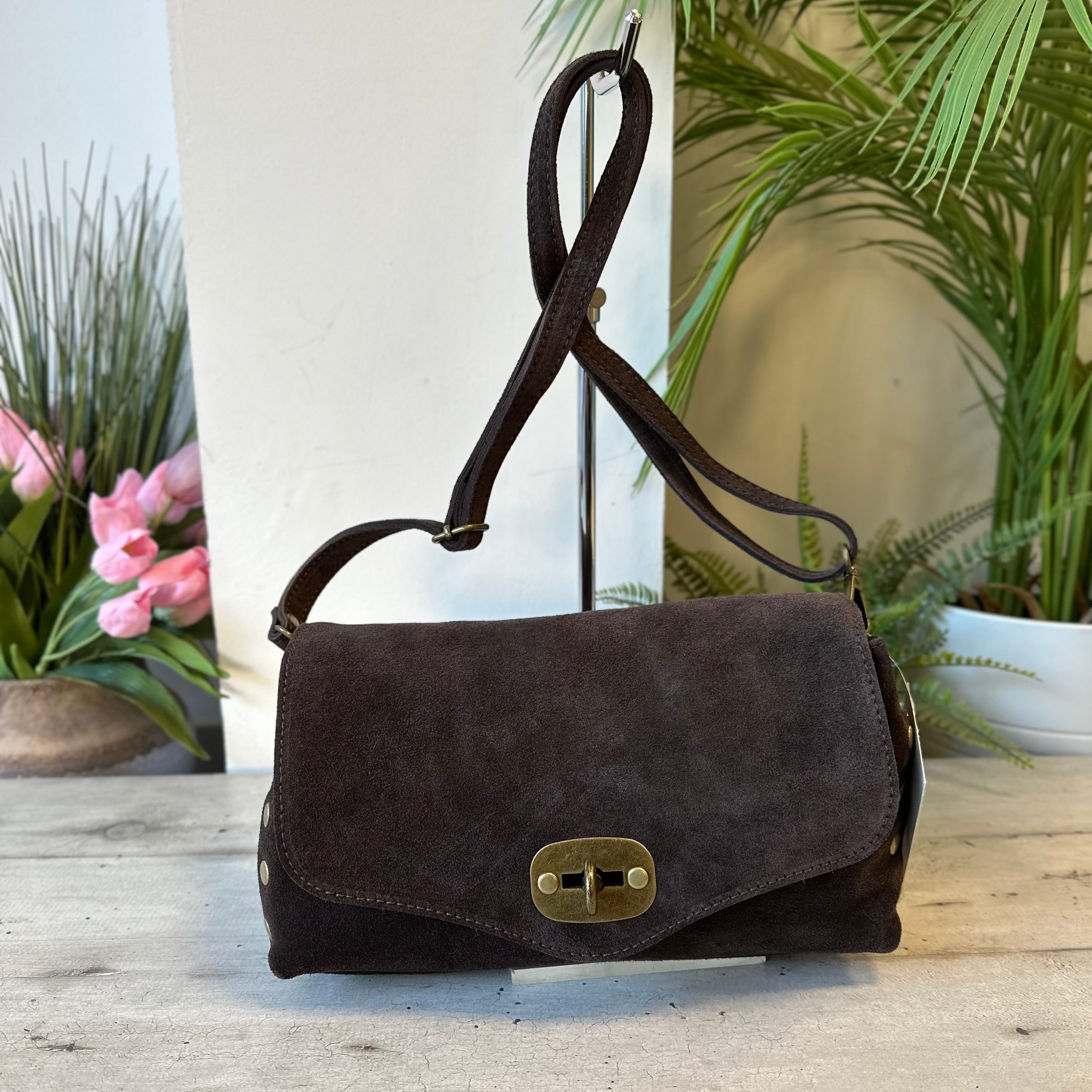 Borsa Baguette pelle scamosciata Marrone con borchiette bronzo