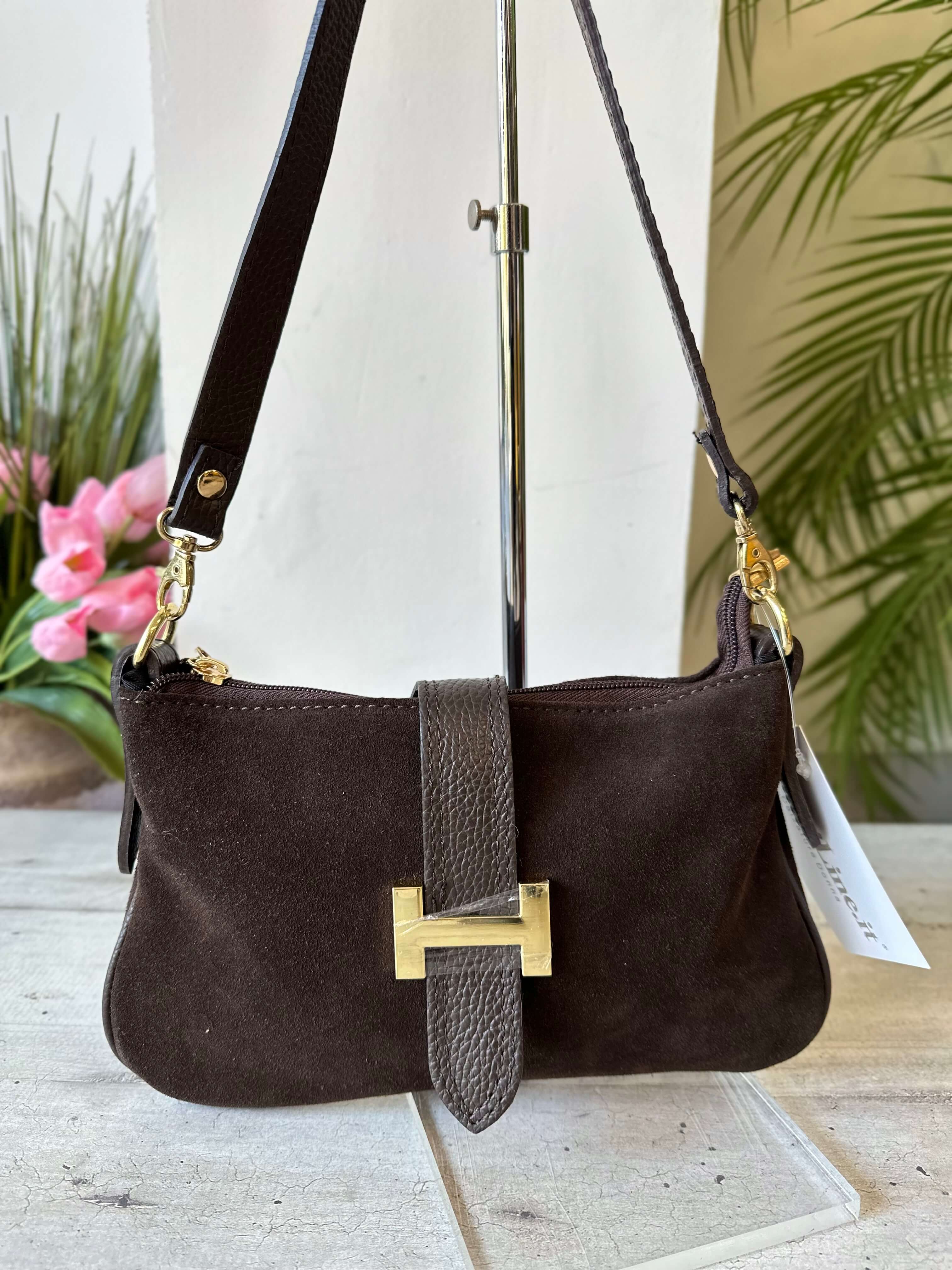 Borsetta a Spalla con Accessorio Dorato Pelle e Camoscio Marrone GIULIETTA