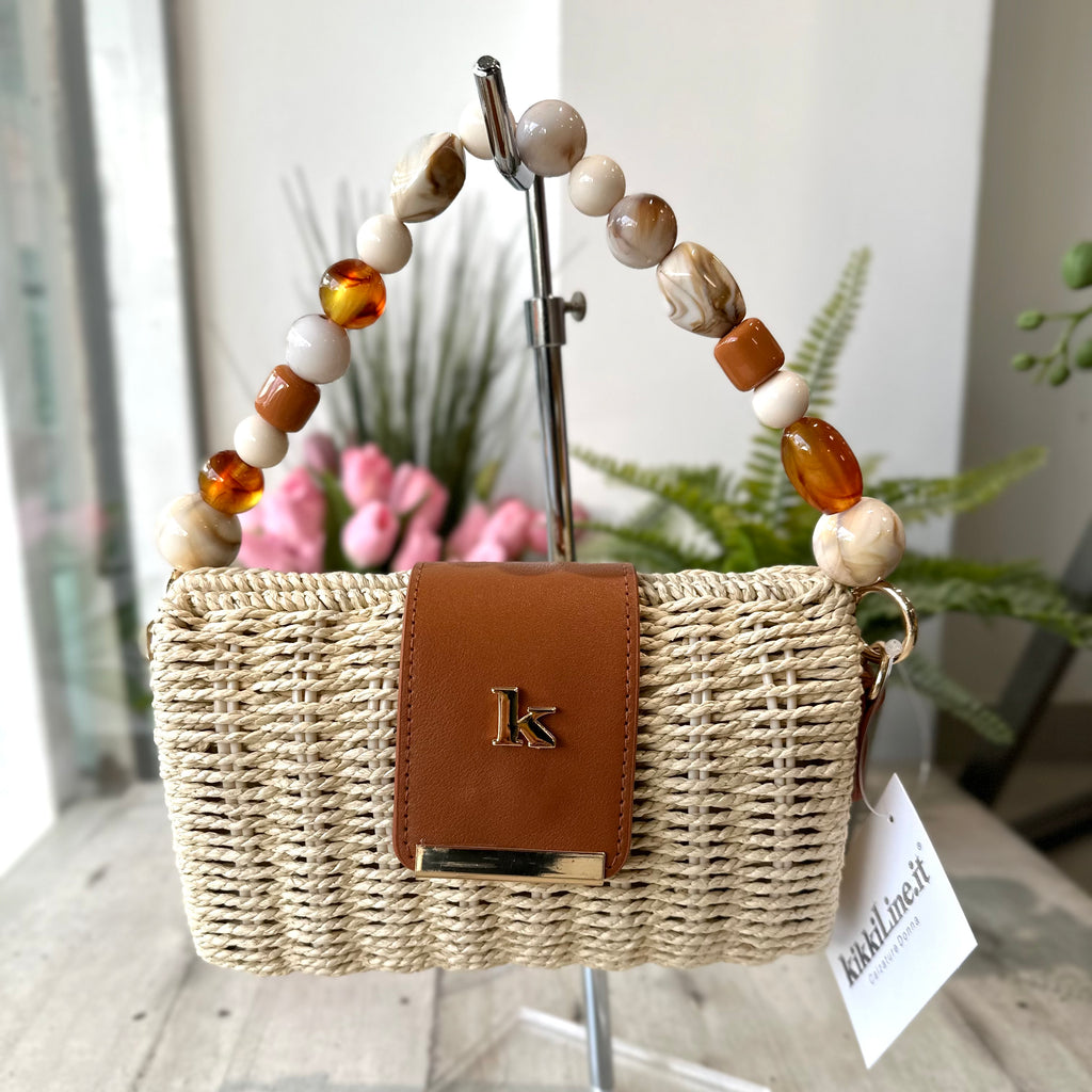 Borsetta Mini Pic-Nic Paglia e Manico di Pietre Sabbia
