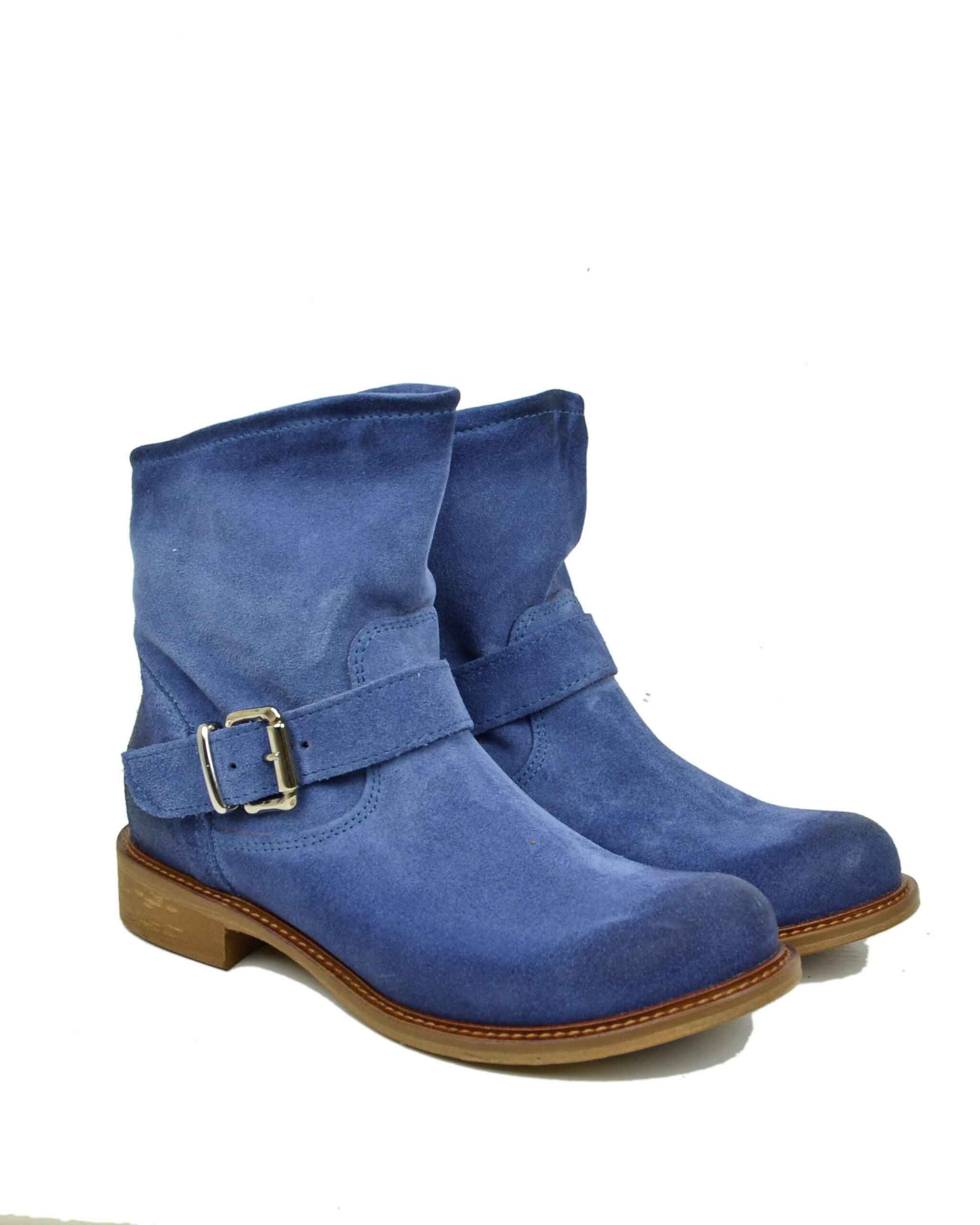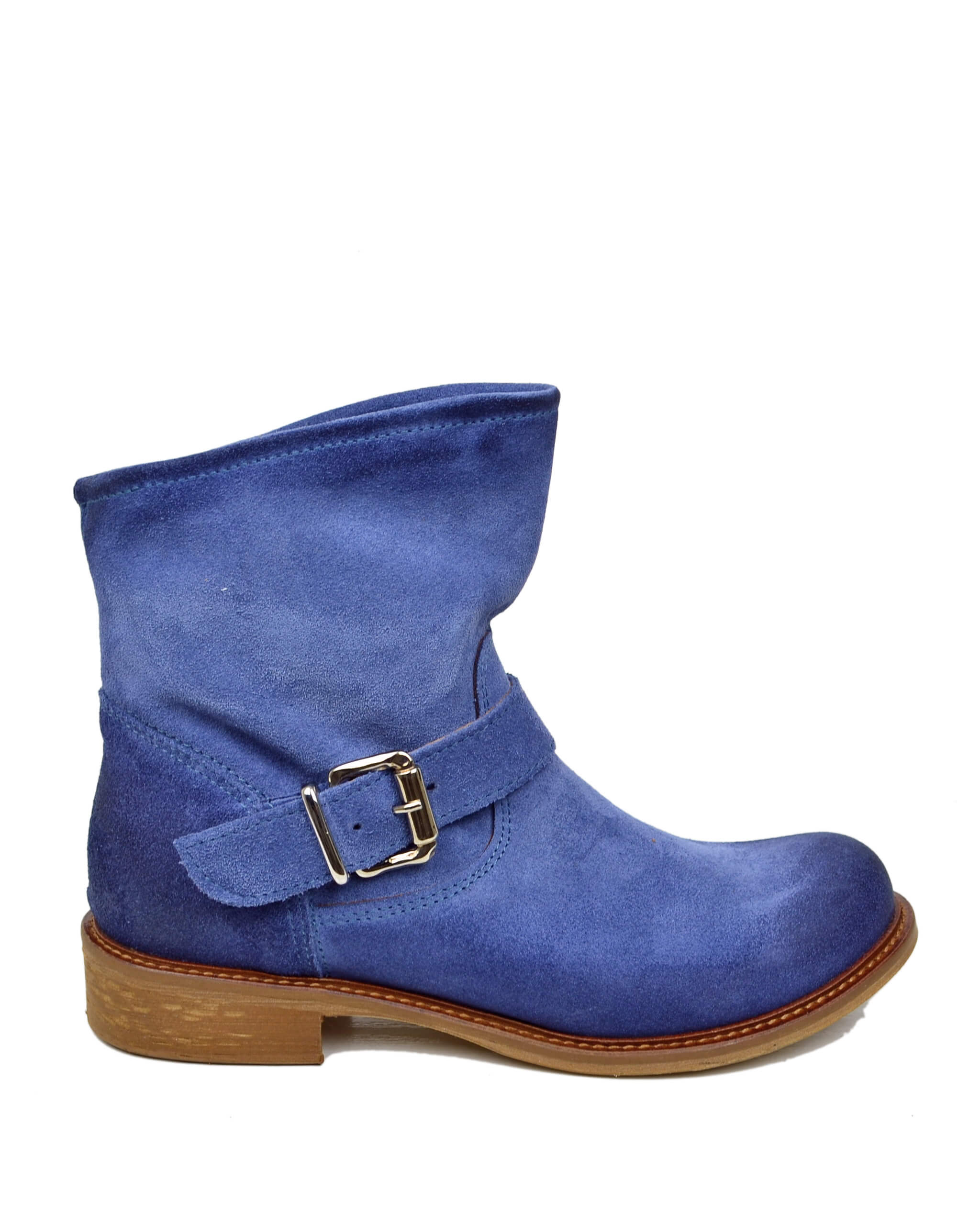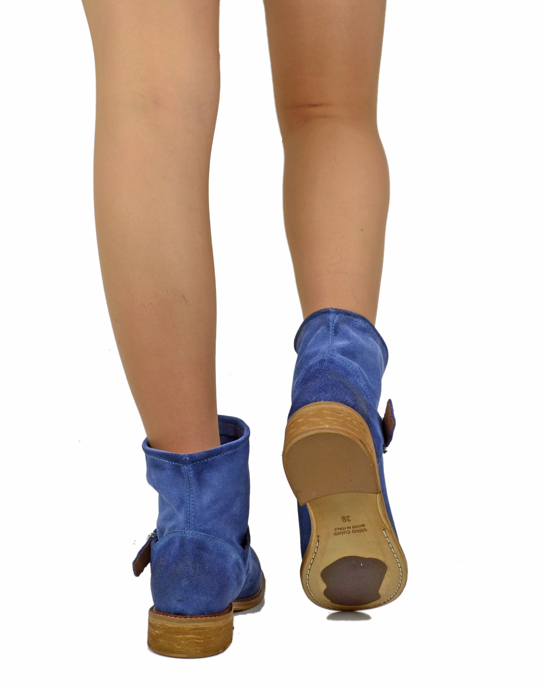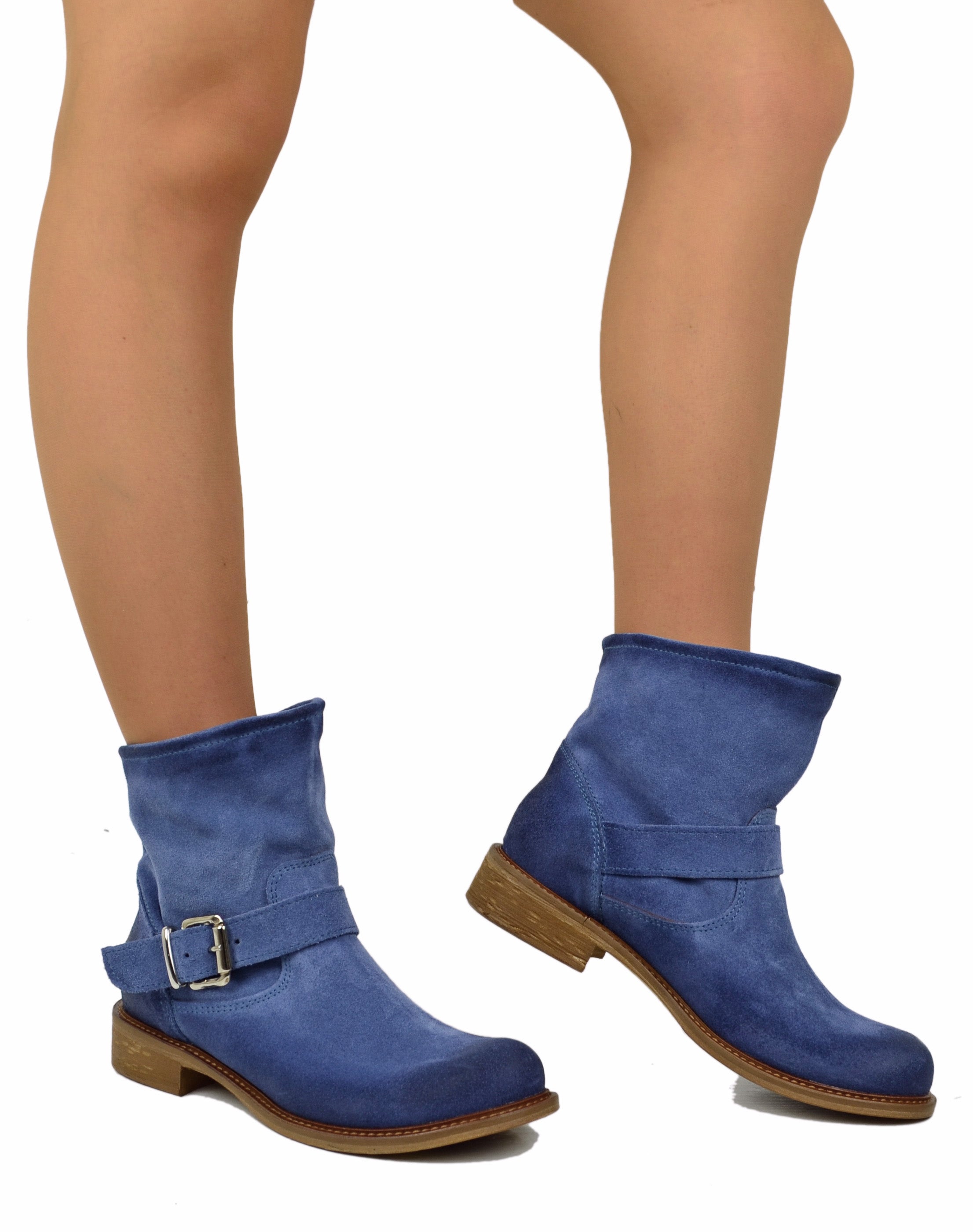 Stivaletti Biker alla Caviglia Bassi Sfoderati Ultraleggeri Pelle Scamosciata Blu Jeans
