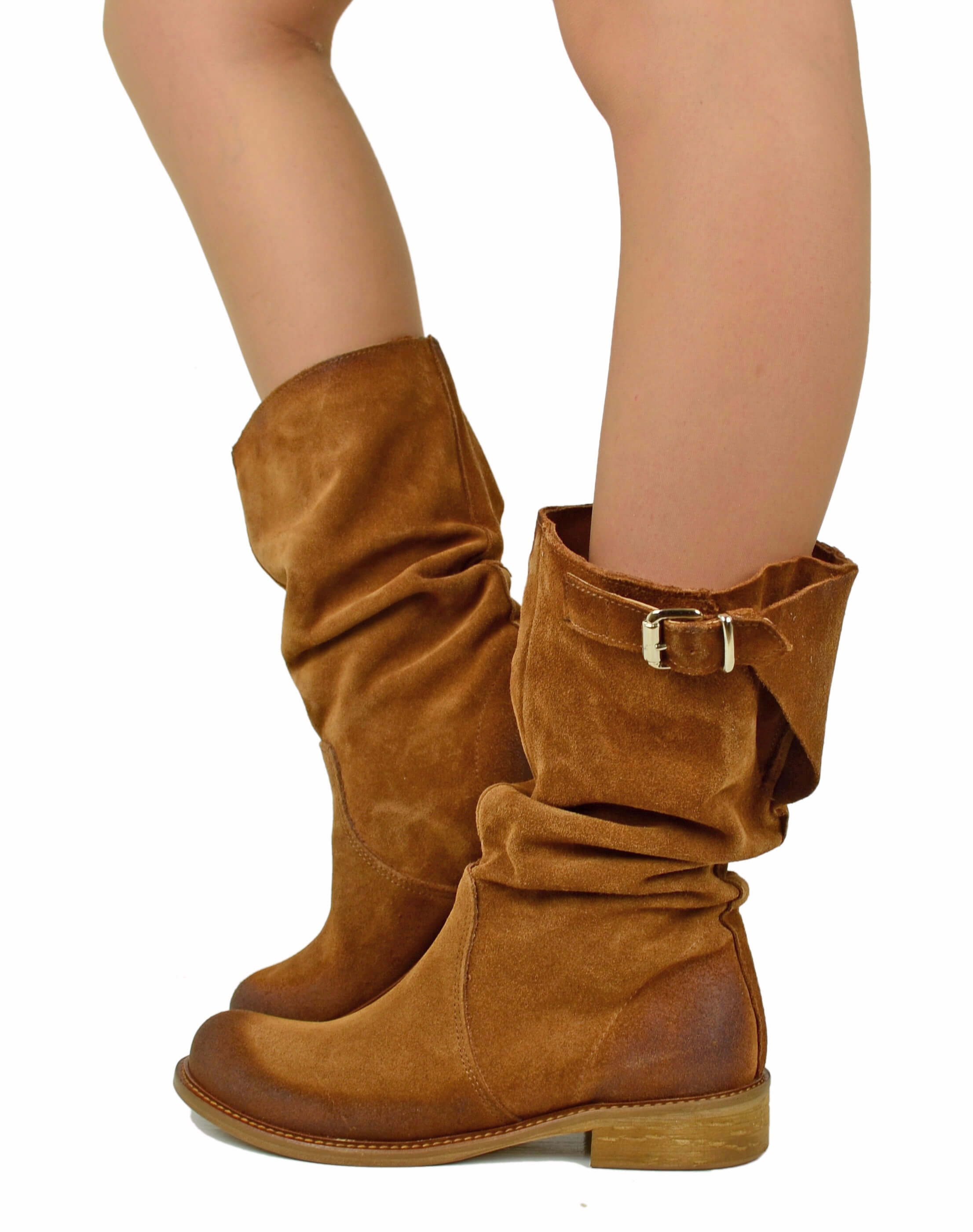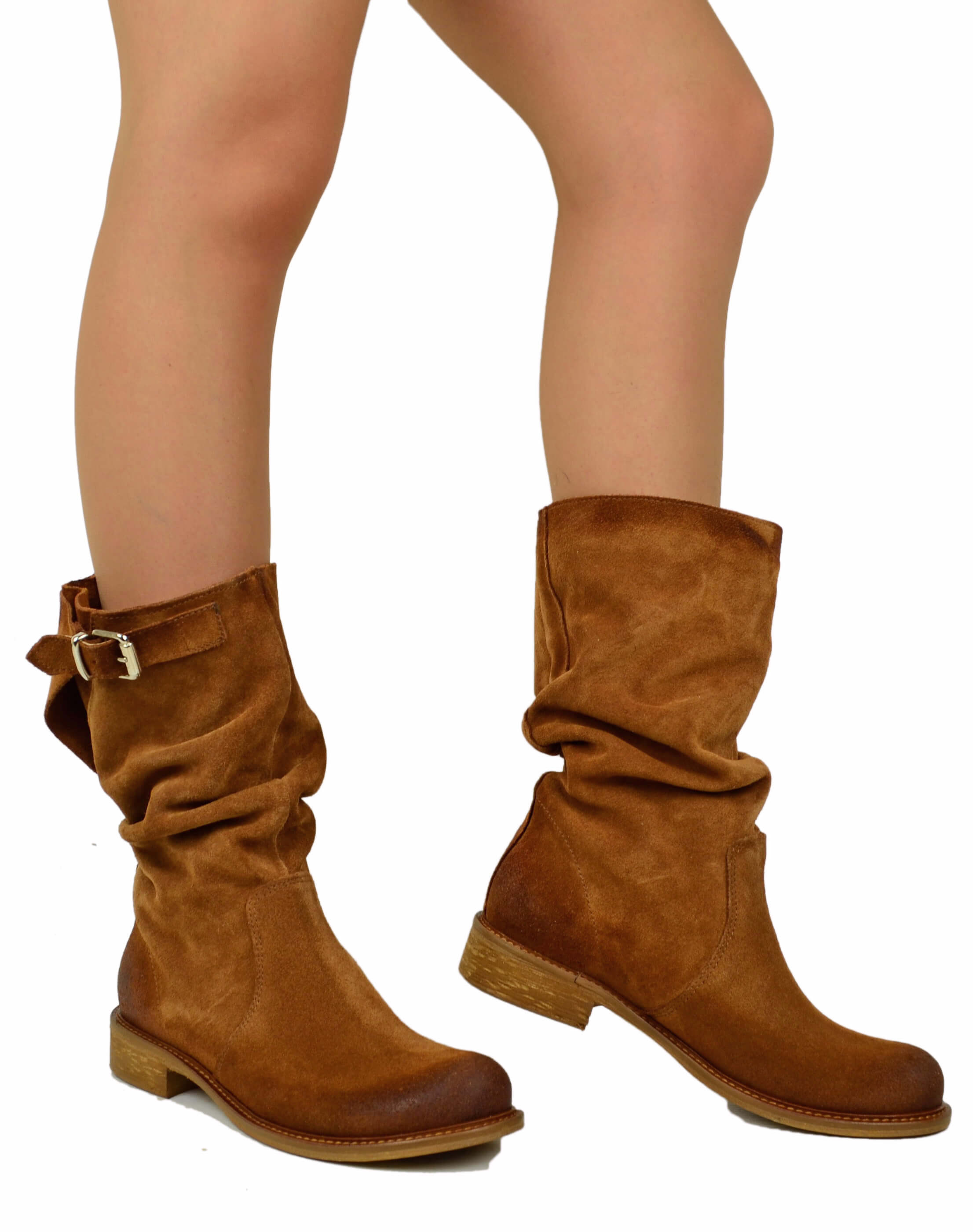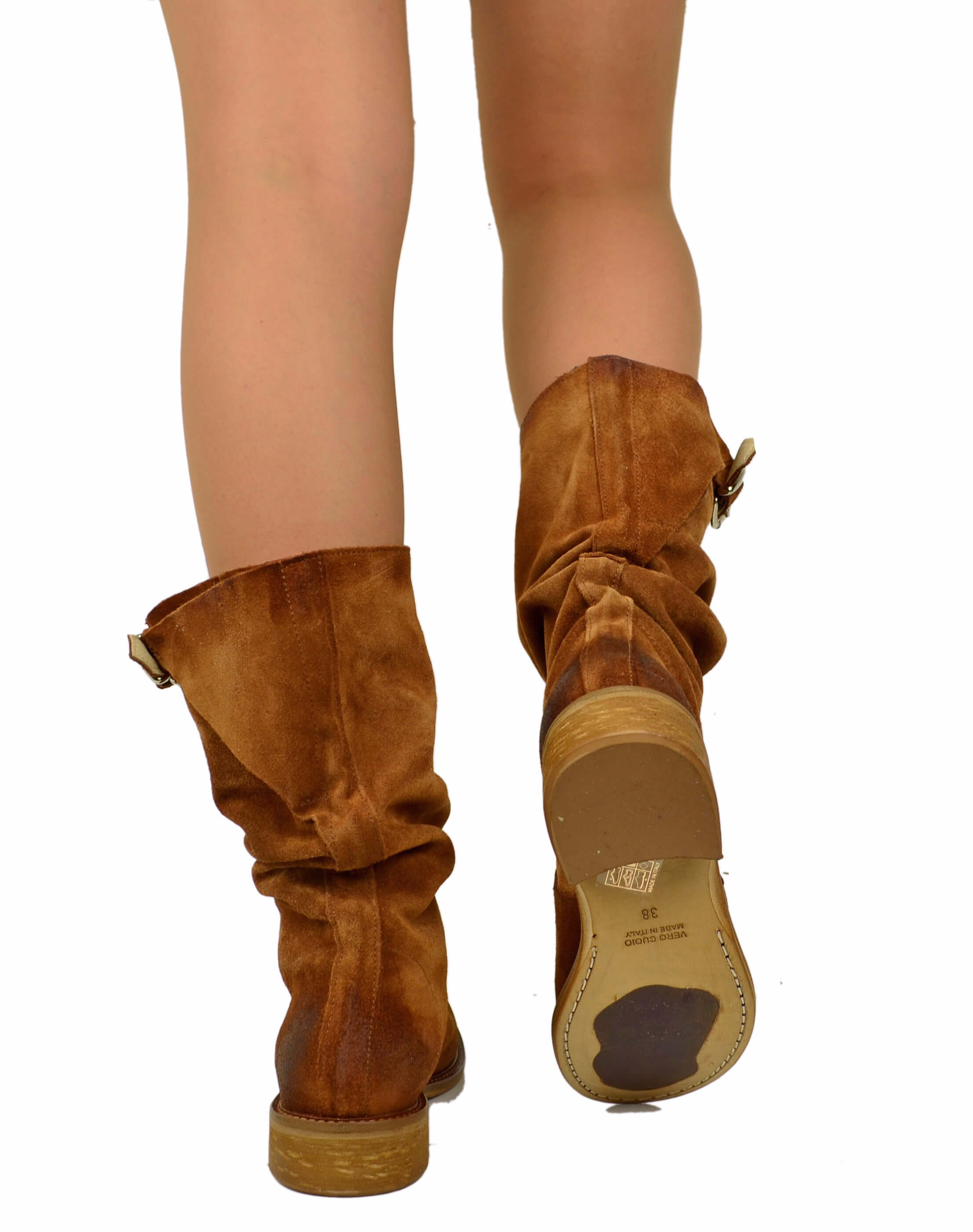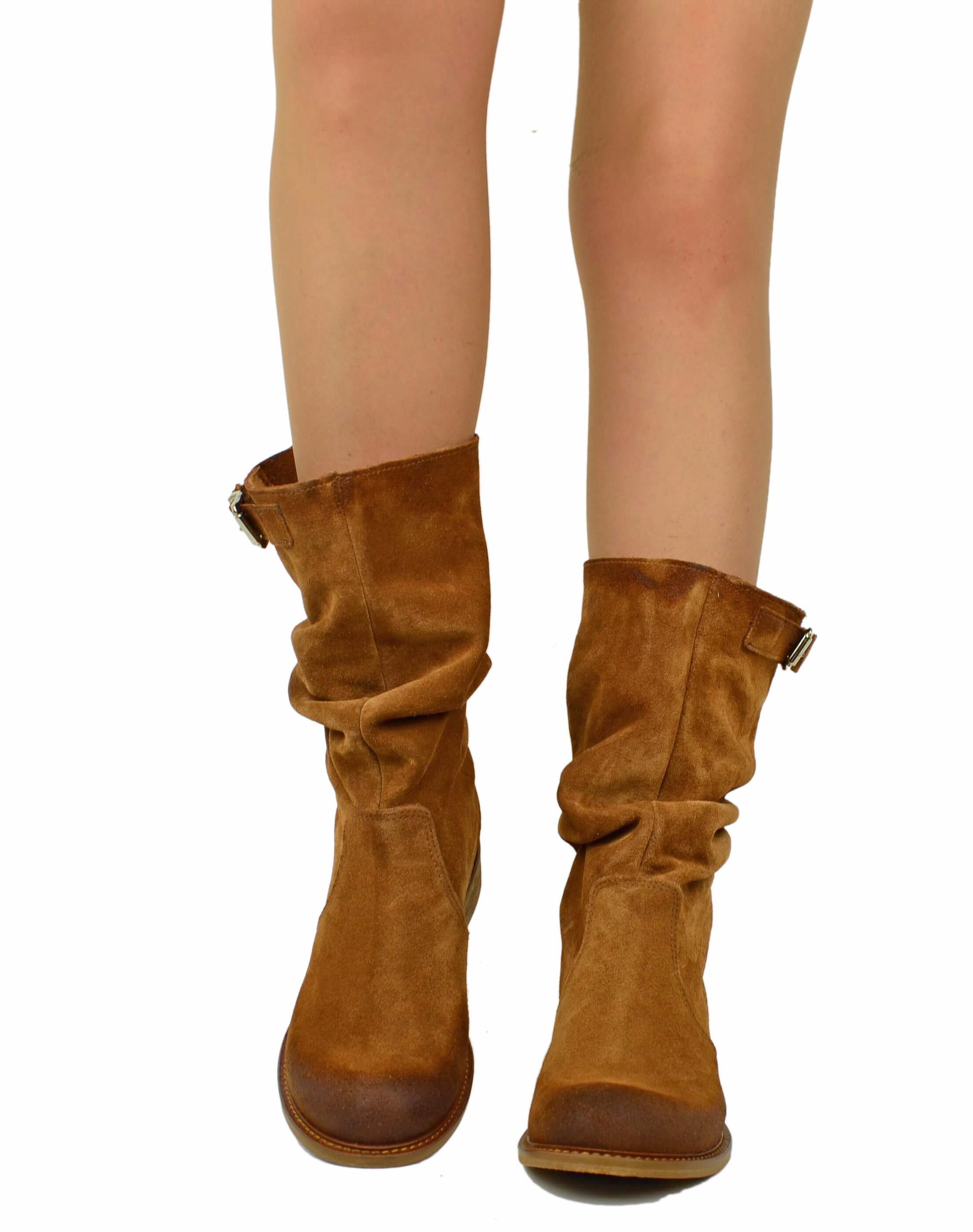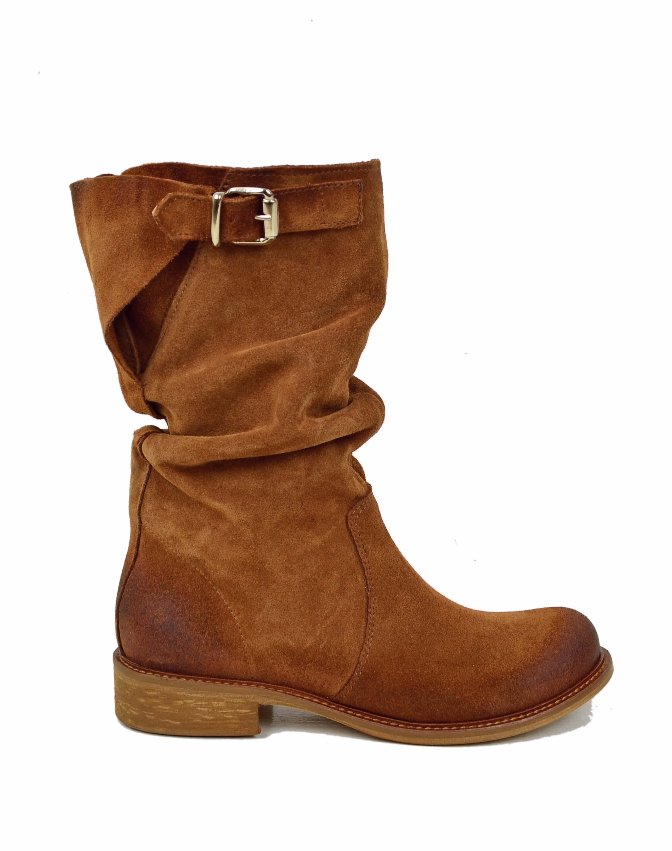 Stivali Biker con Polpaccio Regolabile L suola VERO CUOIO Pelle Scamosciata Cuoio
