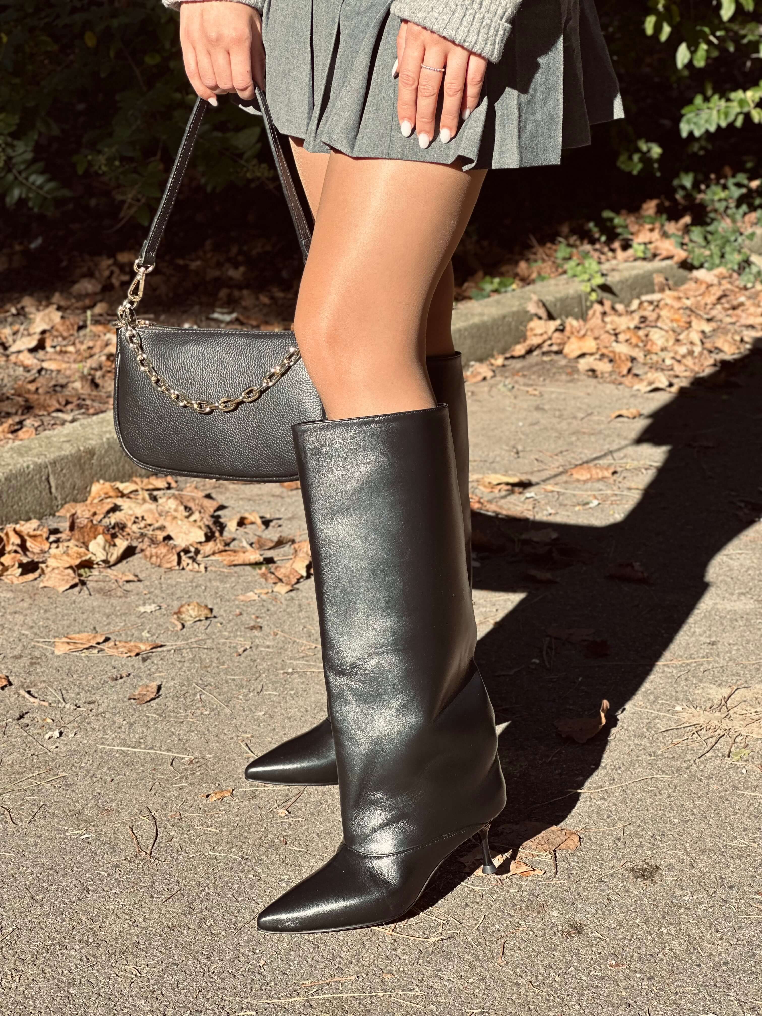Stivali donna eleganti in pelle nera con tacco a spillo. Artigianali Made in Italy, raffinati e comodi per look chic senza tempo.